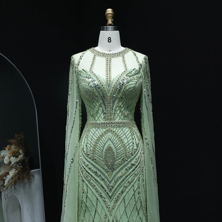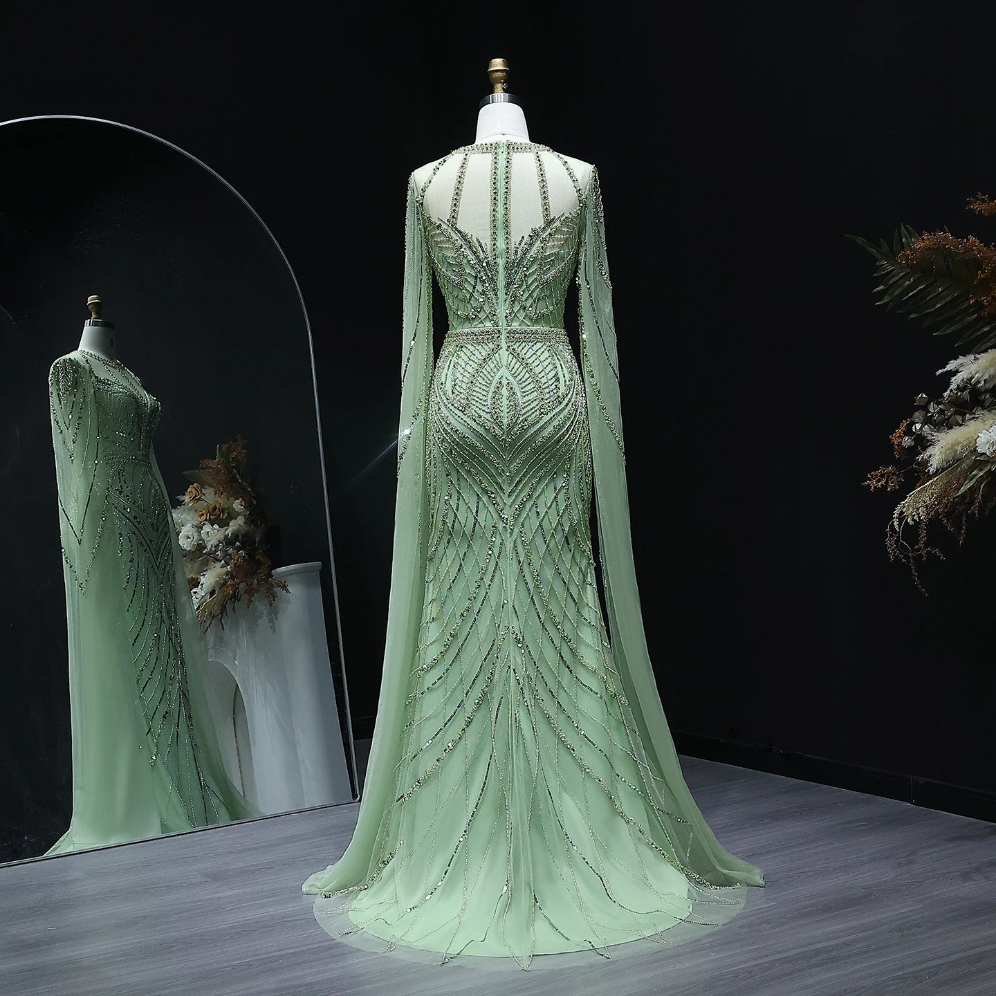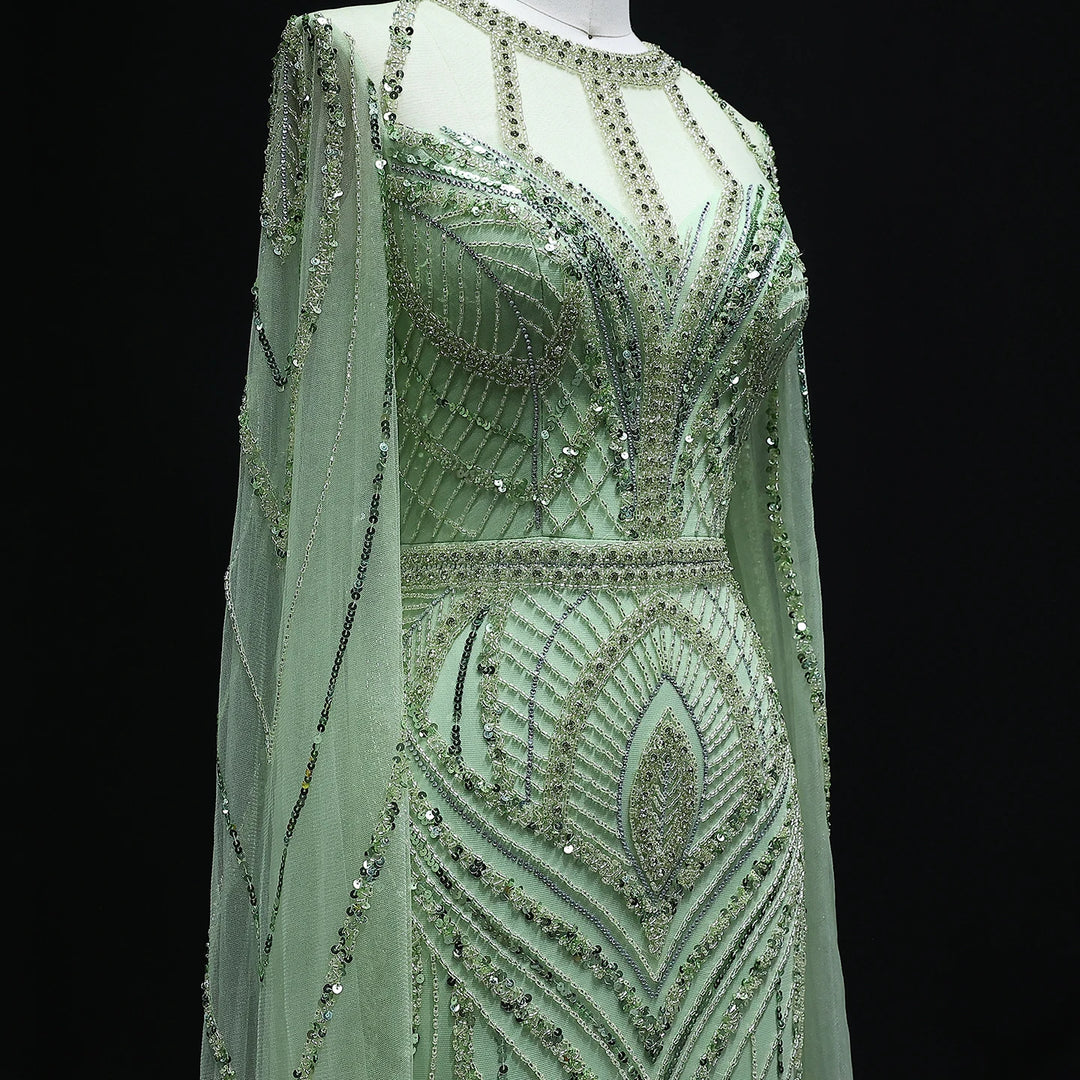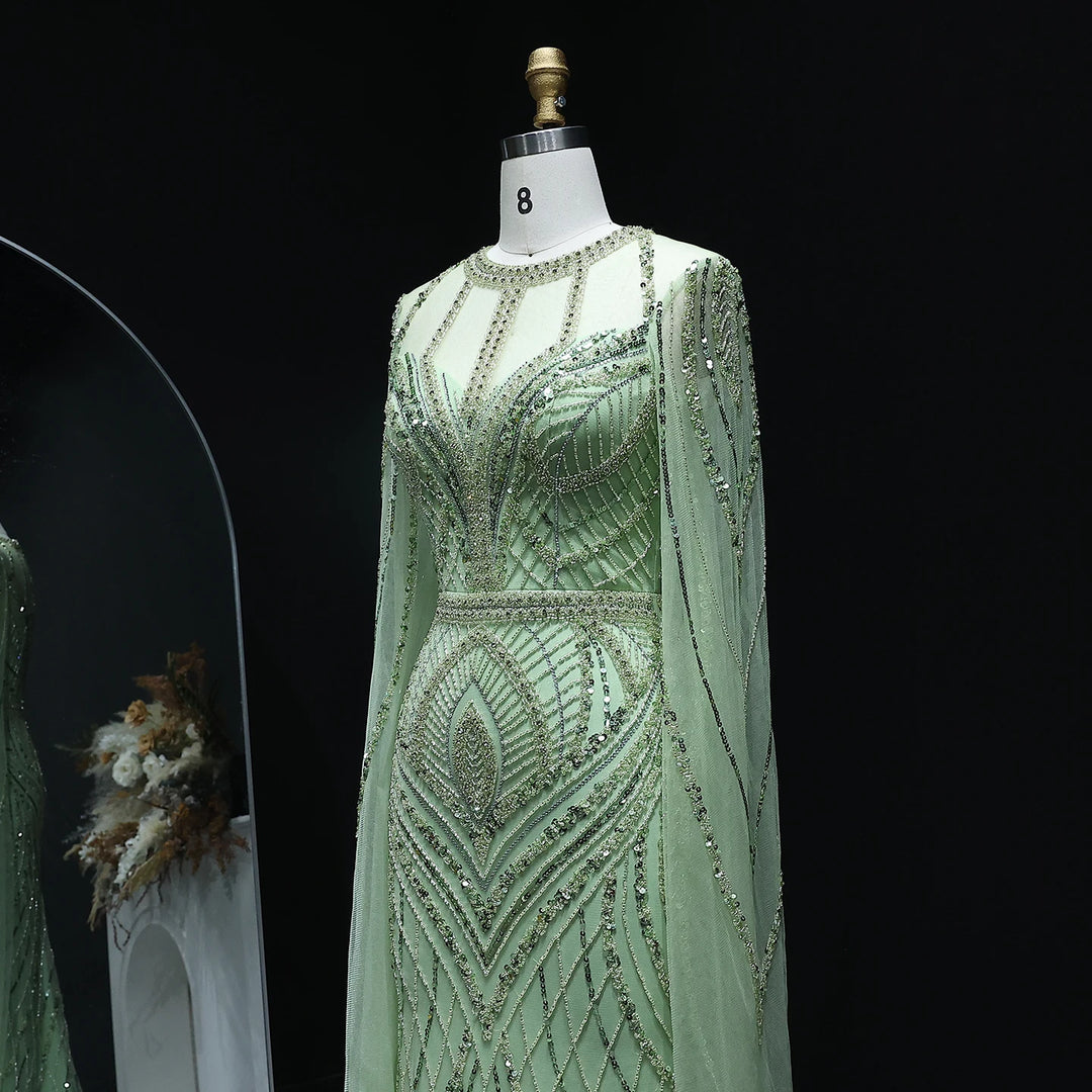 Dubai Green Mermaid Evening Dress with Cape Sleeves SS042