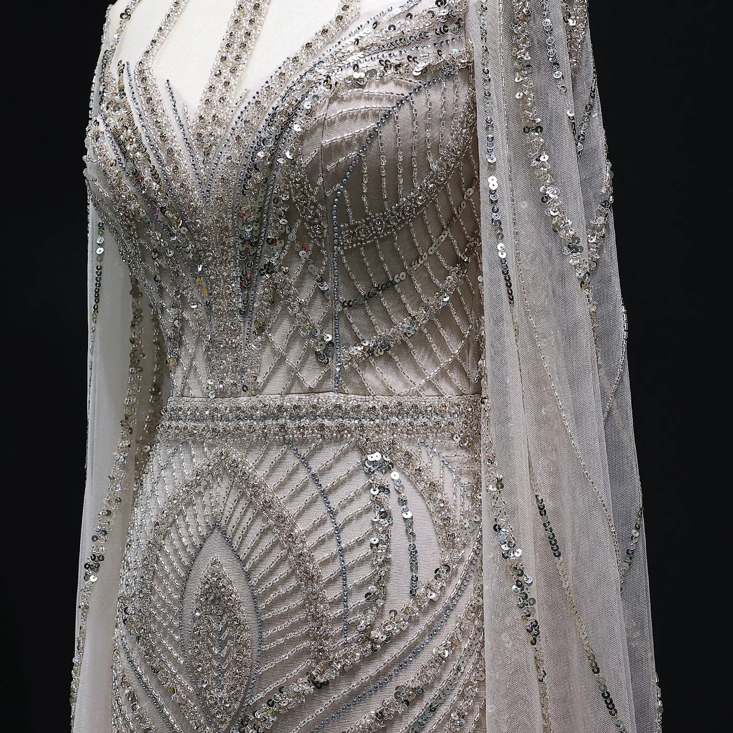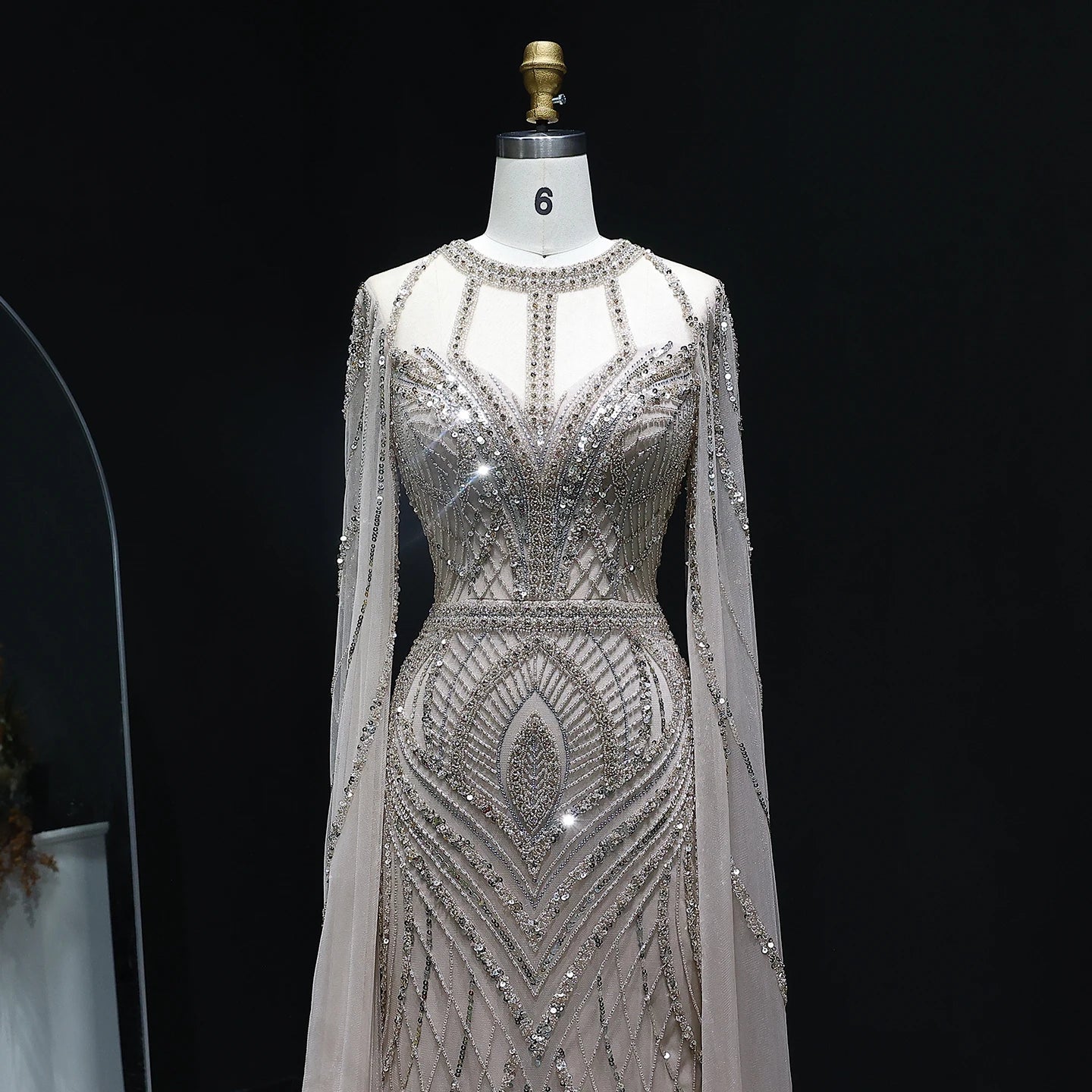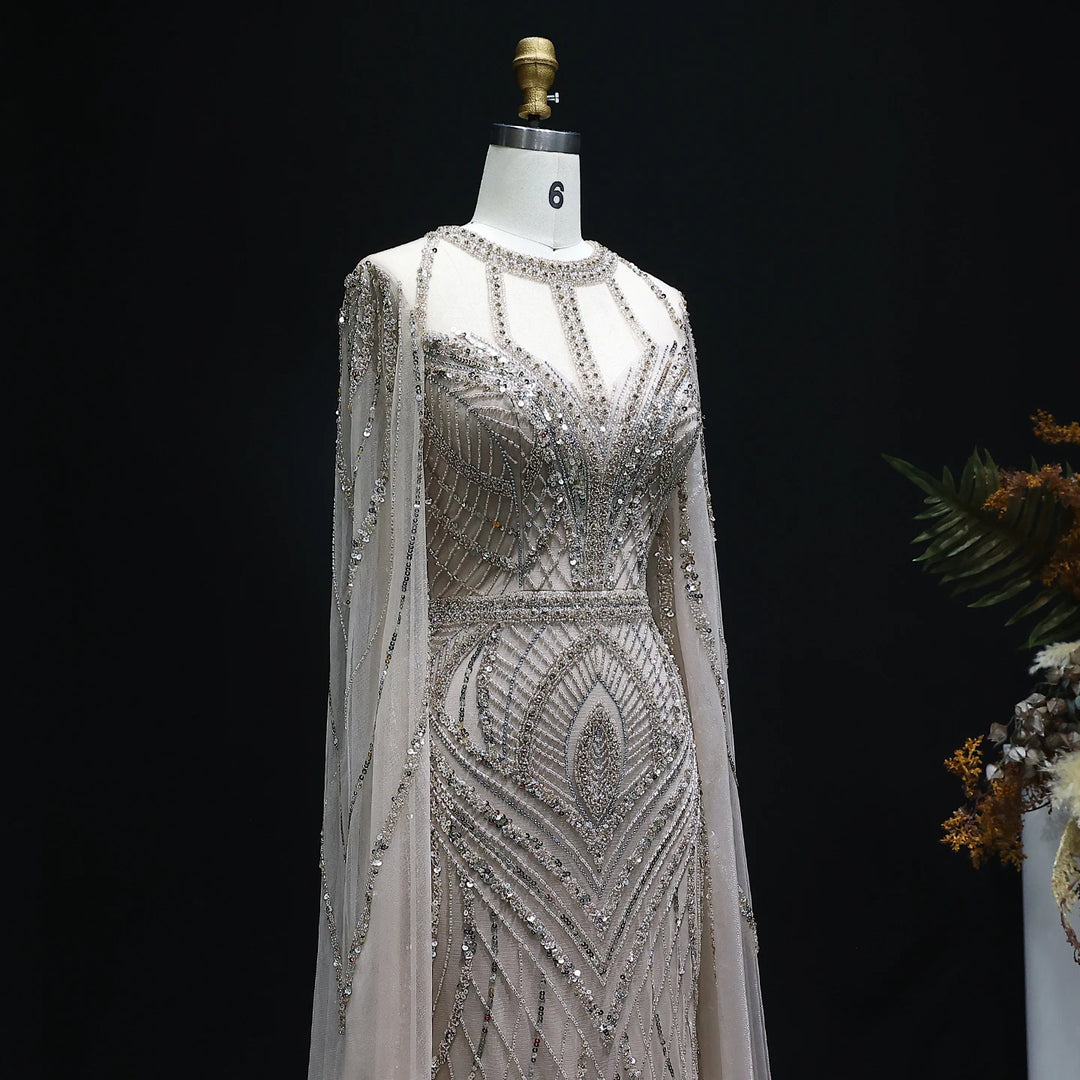 Dubai Green Mermaid Evening Dress with Cape Sleeves SS042
