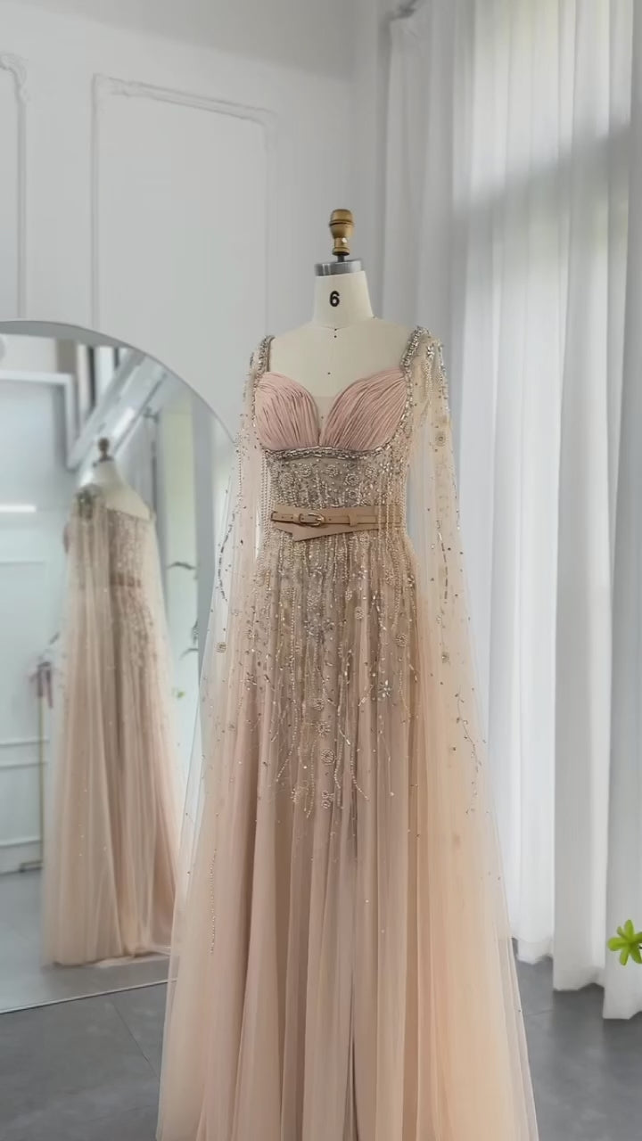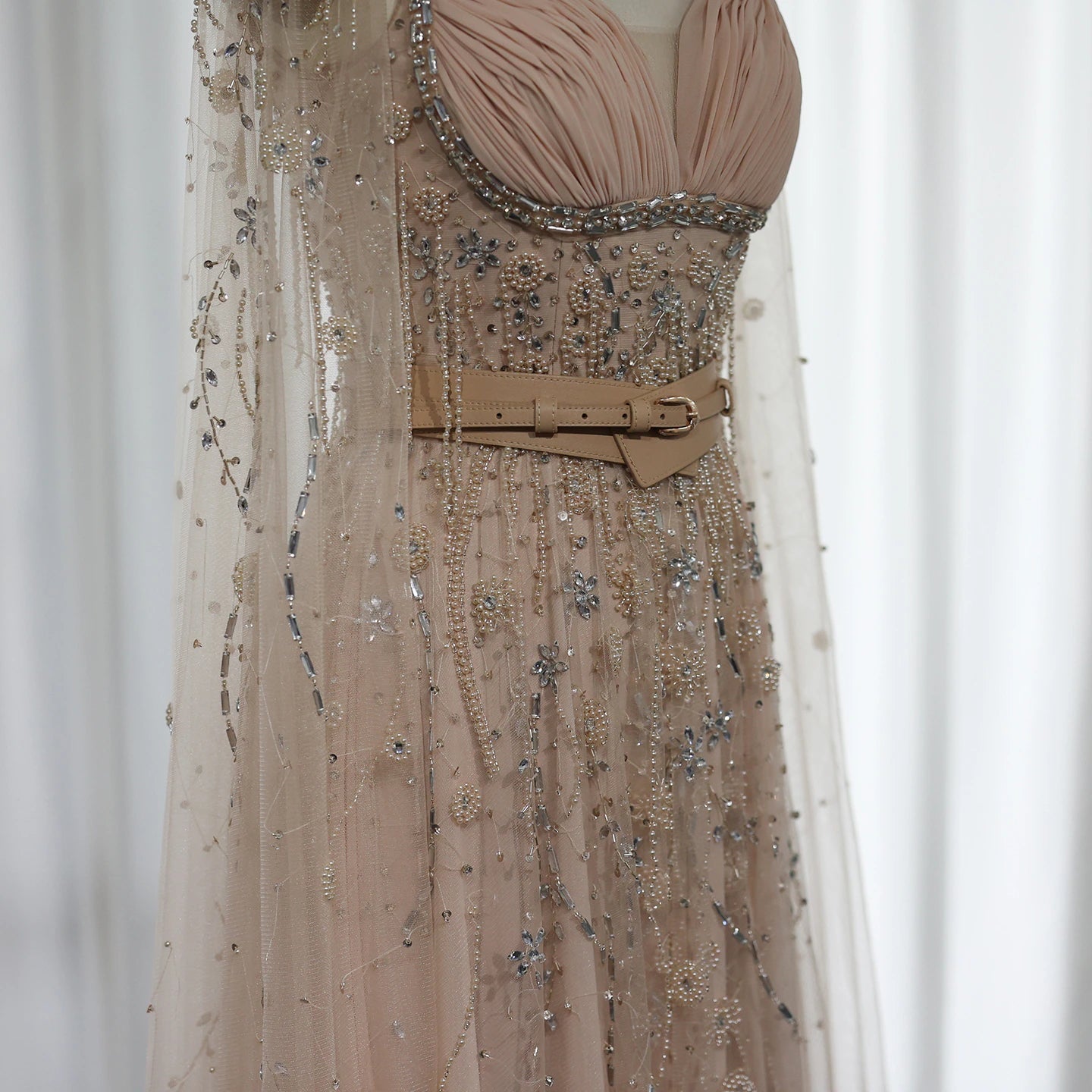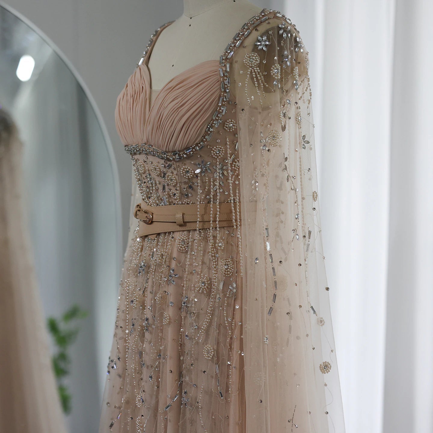 Champagne Dubai Evening Dresses Luxury Women Wedding Party Gown SS376