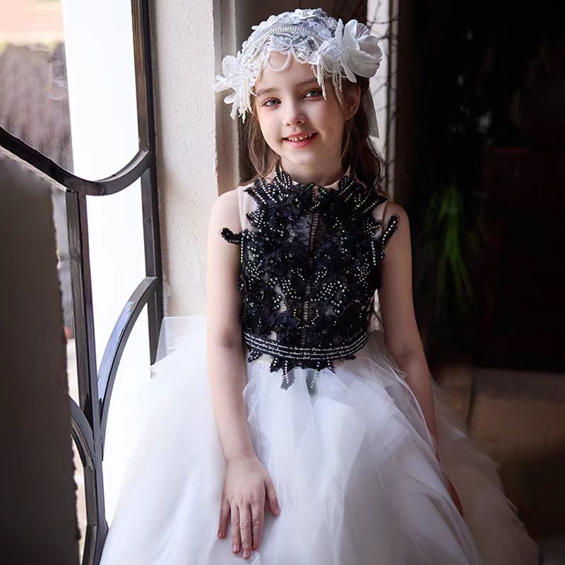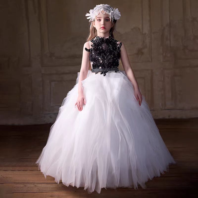 This elegant black and white flower girl dress, ideal for parties and birthdays, is sure to make your little one feel like a dreamy princess. With its intricate design and high quality materials, it offers both style and comfort. Perfect for creating lasting memories and stunning photos.