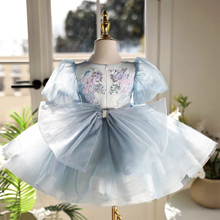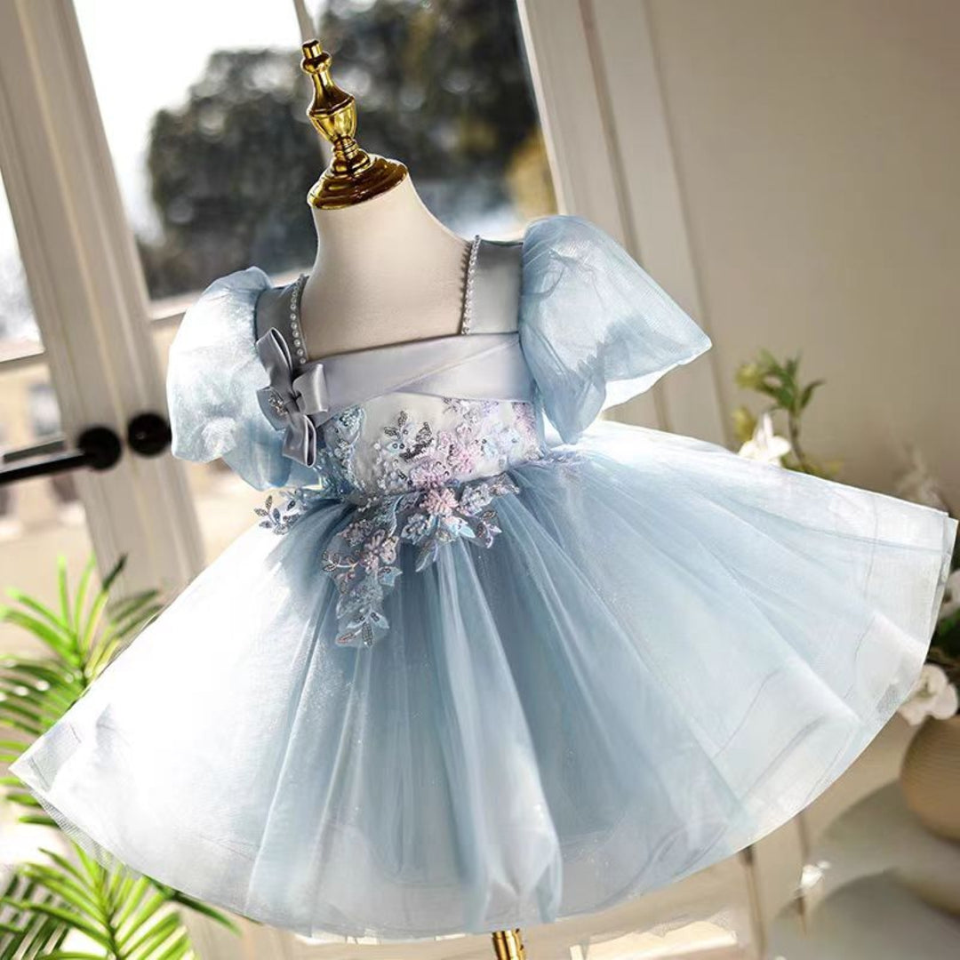 This gorgeous blue girl dress is perfect for any special occasion, from weddings to birthday parties to holiday celebrations. Made with high-quality materials, it offers a dreamy and elegant look that is sure to impress. With its unique design, this dress will make any little girl feel like a princess.