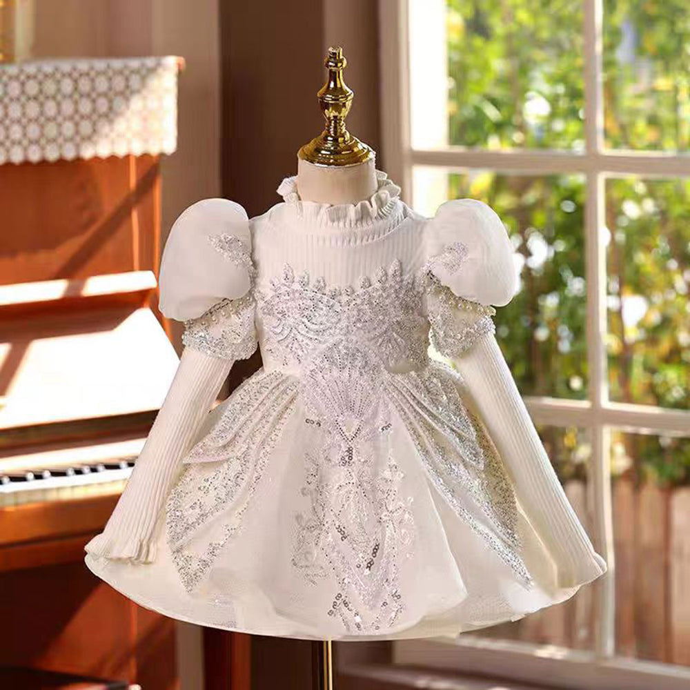 This elegant white princess dress is the perfect choice for your little one's 1st birthday celebration. Made with soft tulle fabric, it has a dreamy look and feel that will make your child feel like royalty. The intricate details and design will surely make for unforgettable photos.