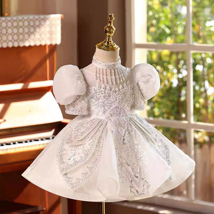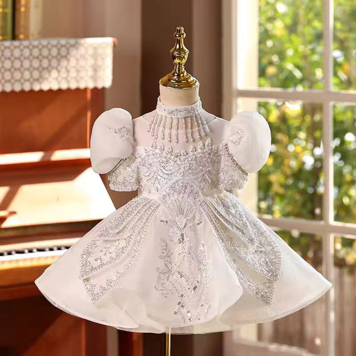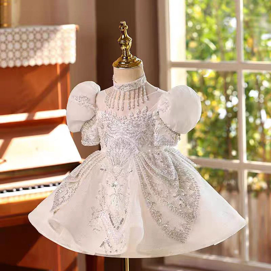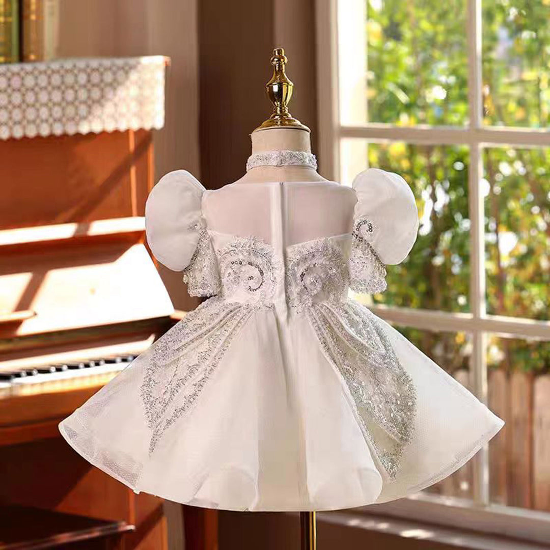 Elegant White Girl Princess Dress Tulle For Kids 1st Birthday J784