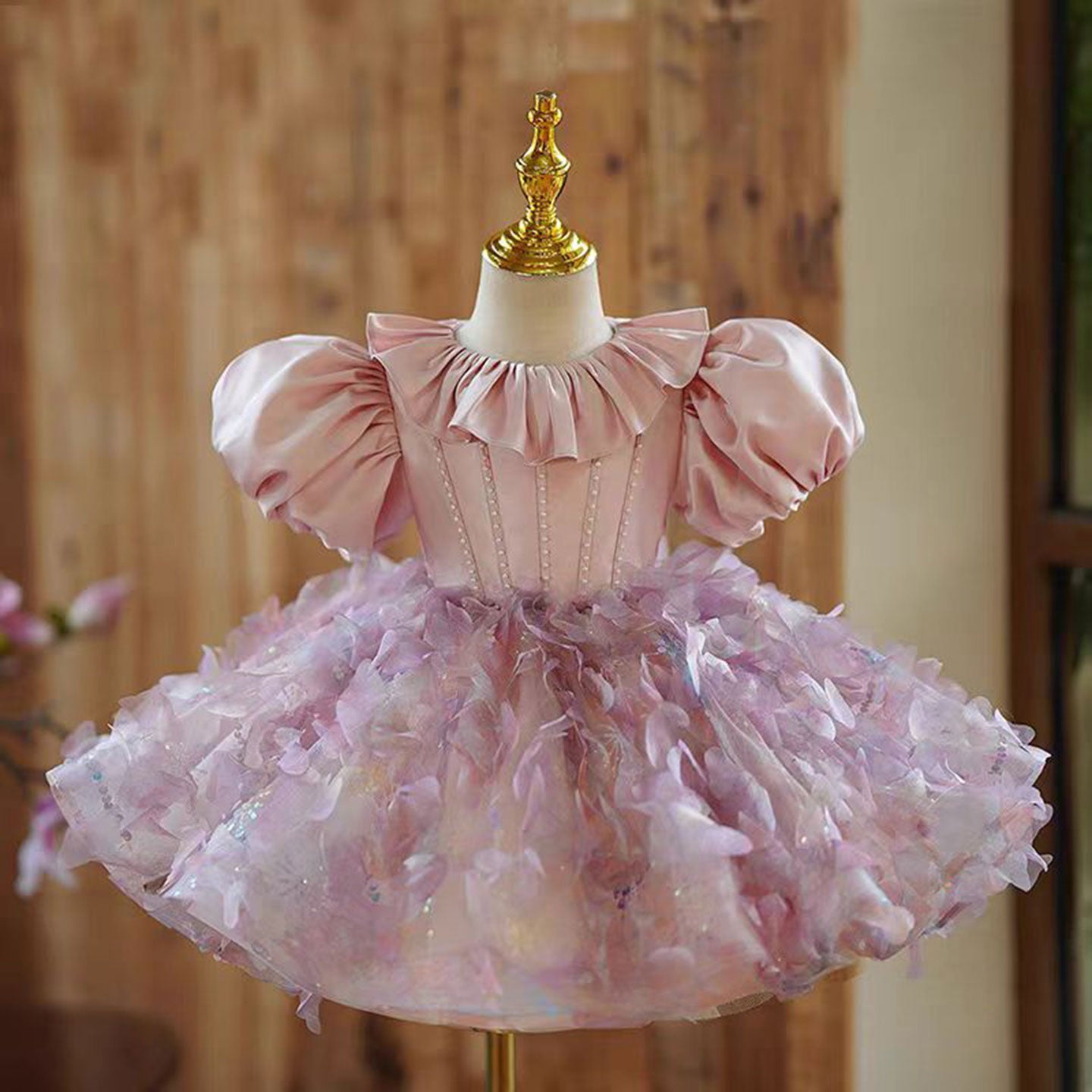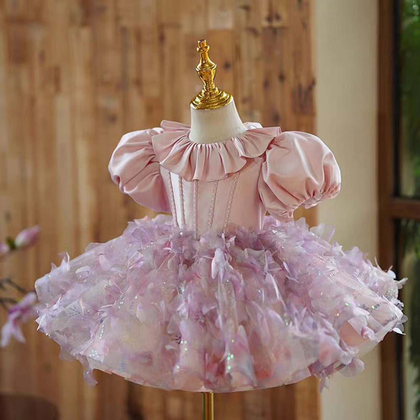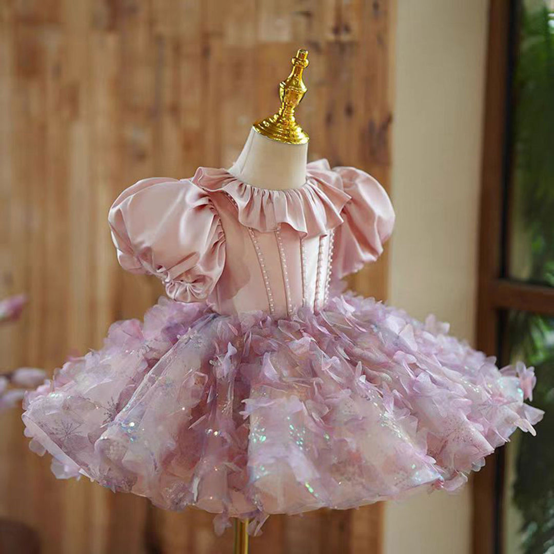 Elevate your little one's birthday celebration with this Dreamy Floral Pink Girl Dress! Crafted with a soft satin material and adorned with ruffled neckline, this dress exudes royalty and grace. Perfect for your princess's first birthday or any special occasion, she'll be the center of attention in this dreamy dress.
