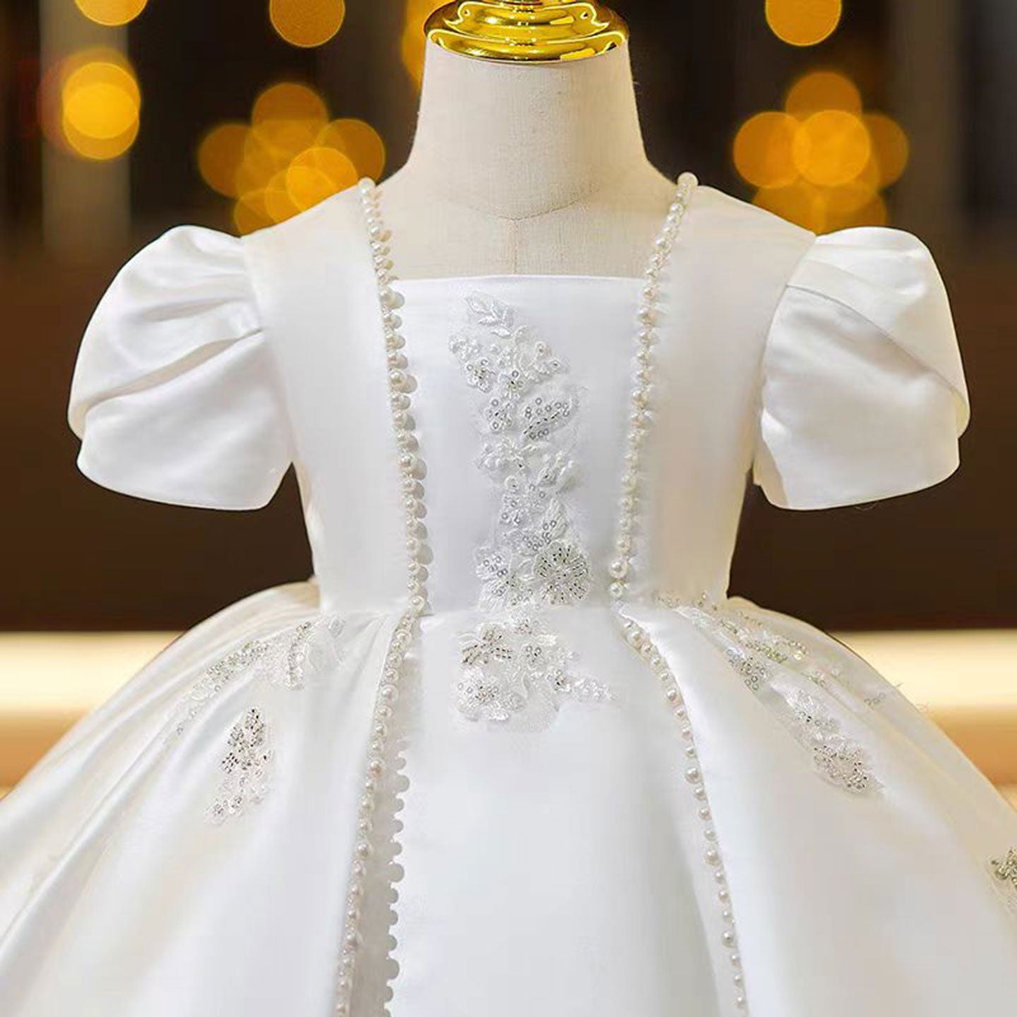 Gorgeous Satin Embroidered Girl Dress With Pearls J790