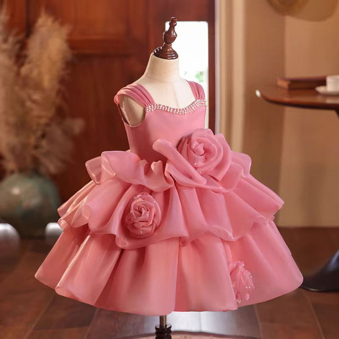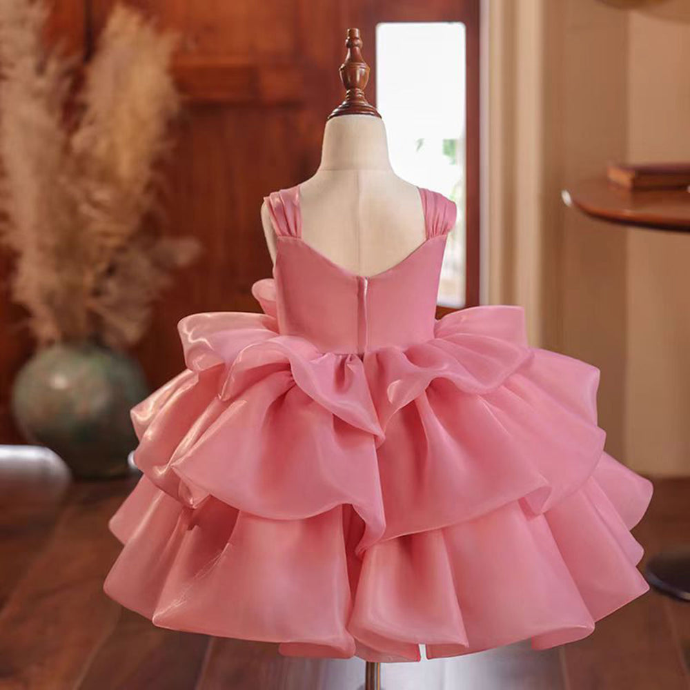 Pink Flower Girl Dress Sleeveless for Princess Kids 1st Birthday Party J710