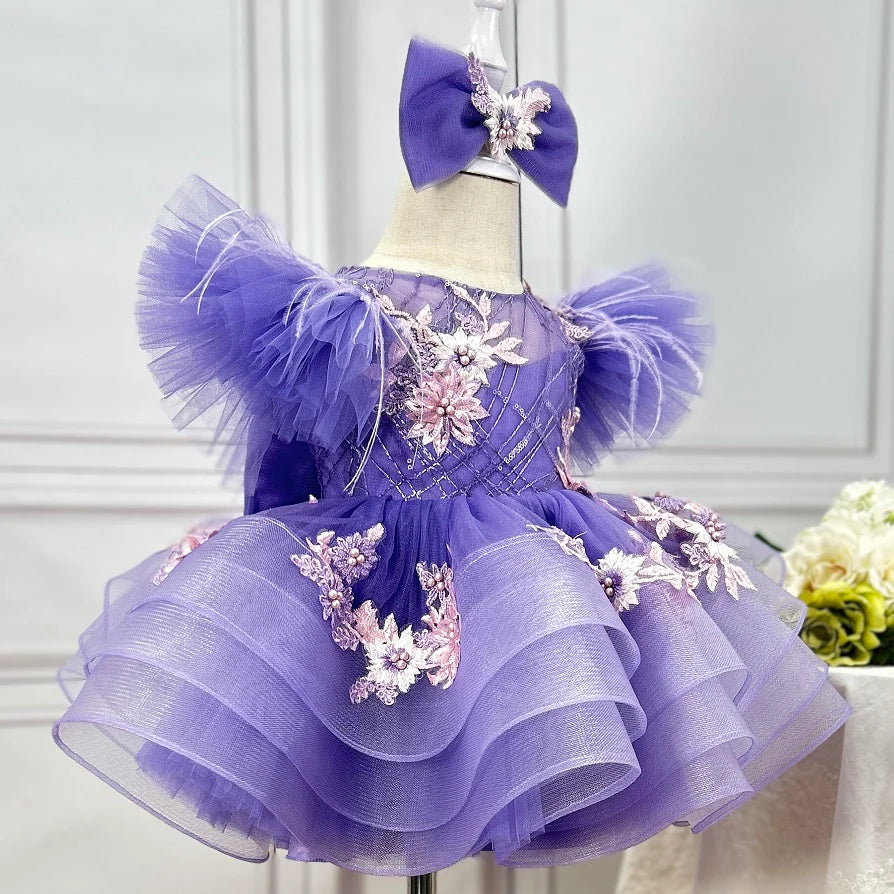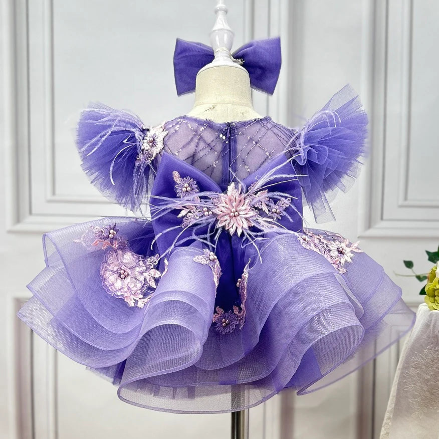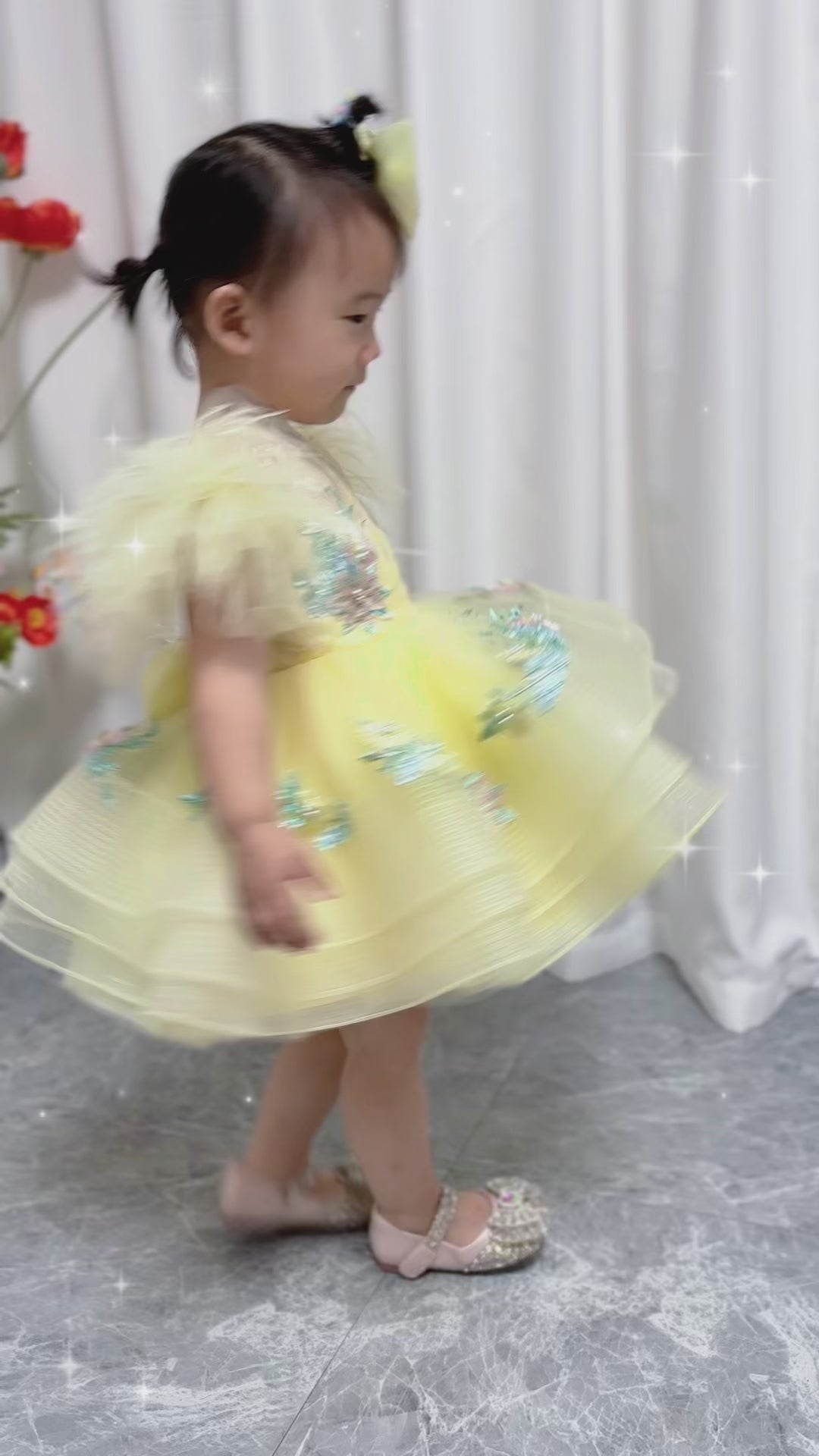 Sequins Princess Yellow Girl Dress Knee Length Puffy Sleeve J258
