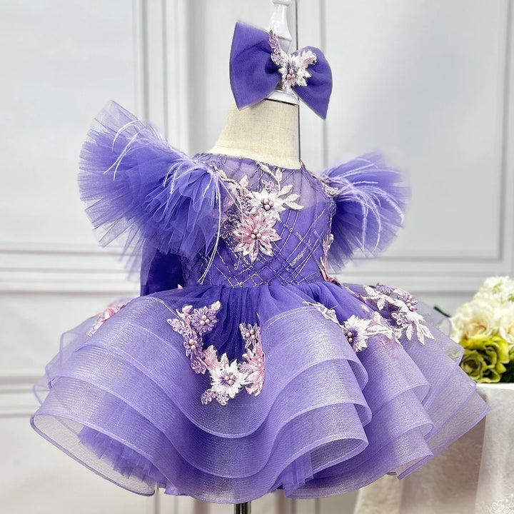 Sequins  Princess Yellow Girl Dress Knee Length Puffy Sleeve J258