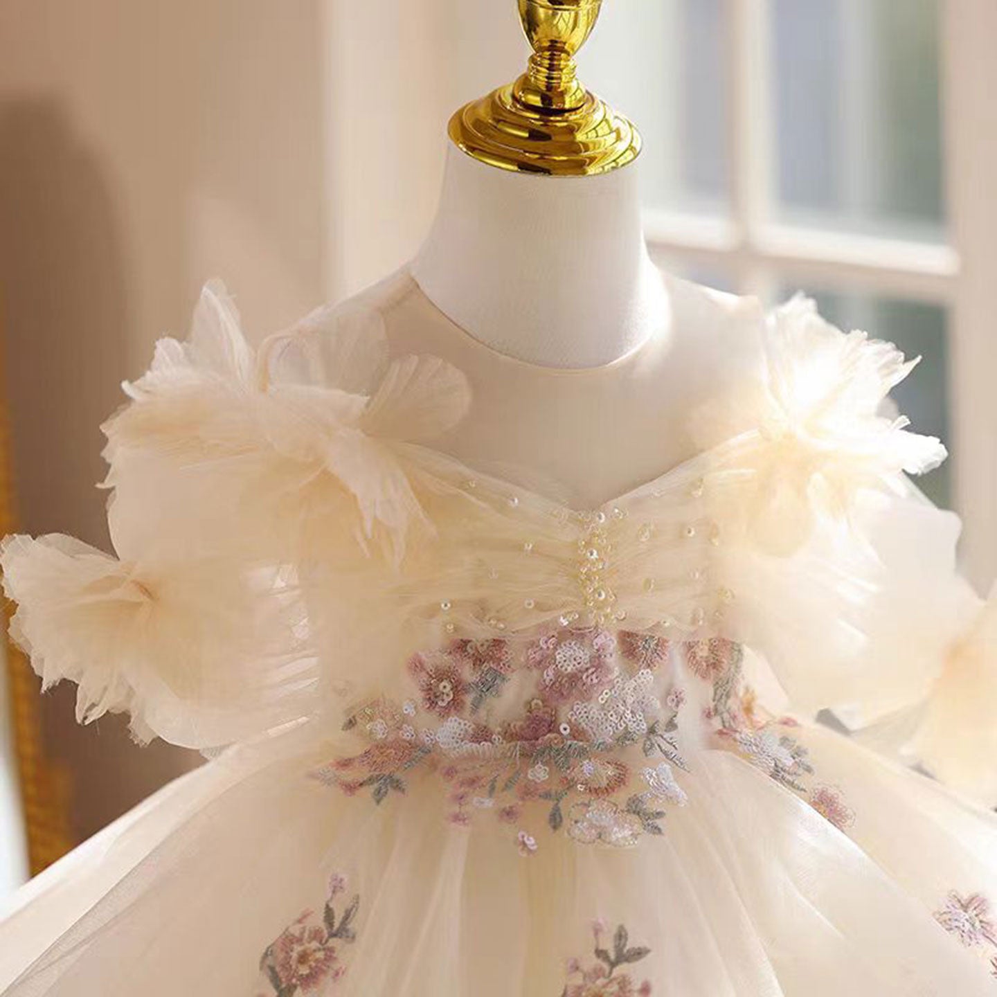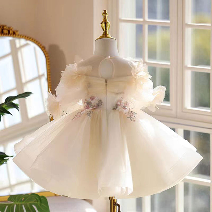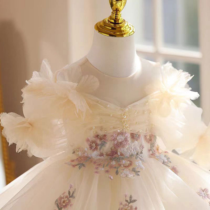 Shining Applique Embroidered Tulle Flower Girl Dress Champagne J533