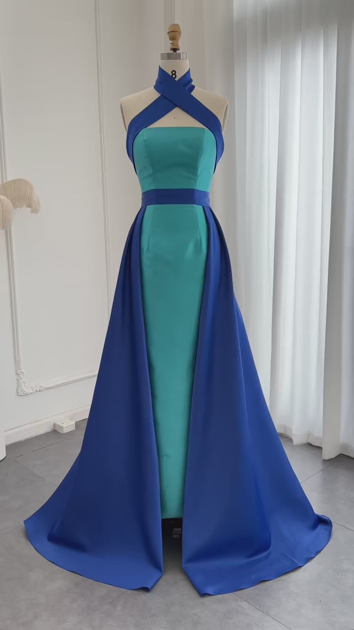 Royal Blue Contrast Turquoise Evening Dress with Overskirt SF012