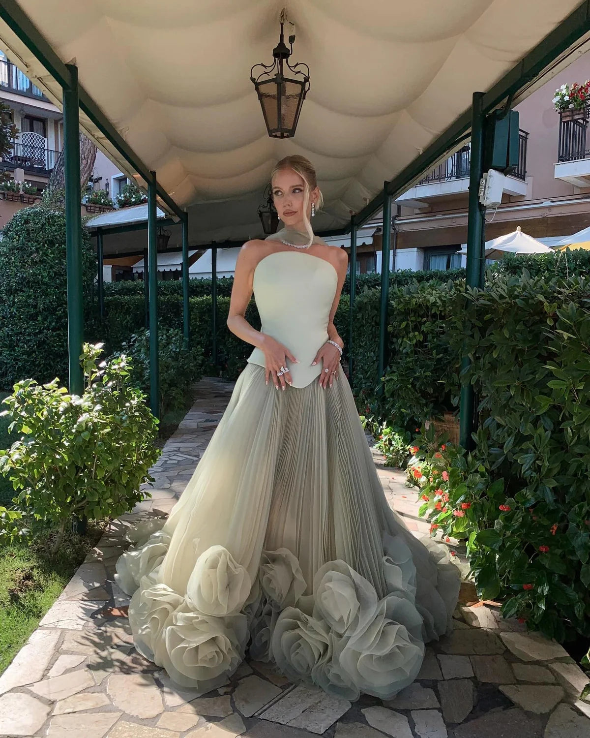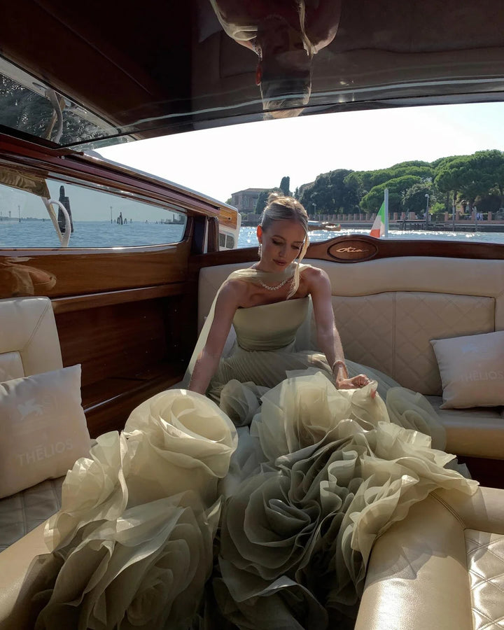 Elegant Green Strapless 3D Flowers Evening Dress SS230