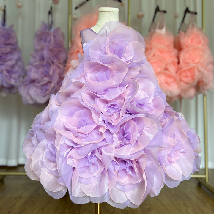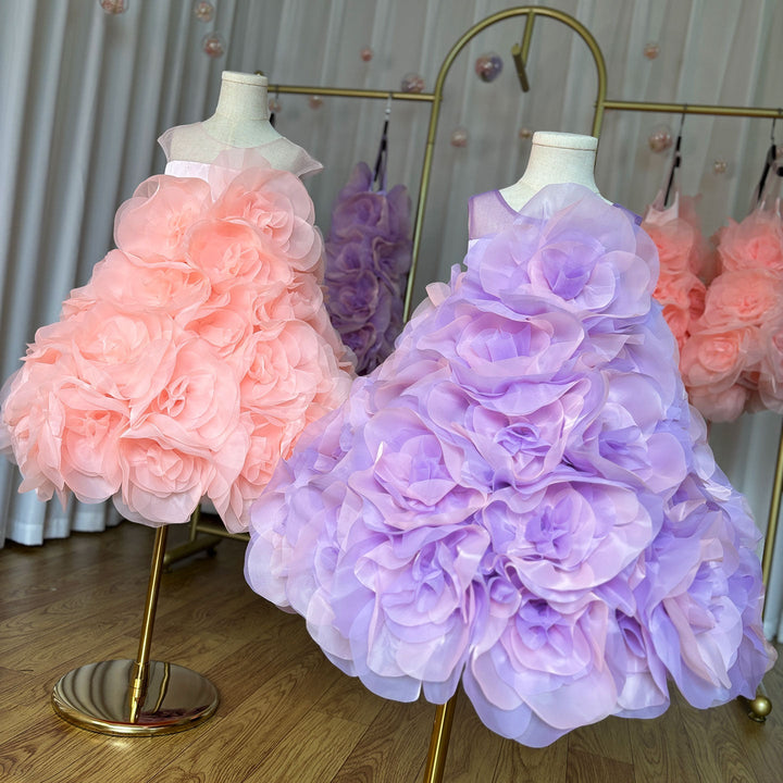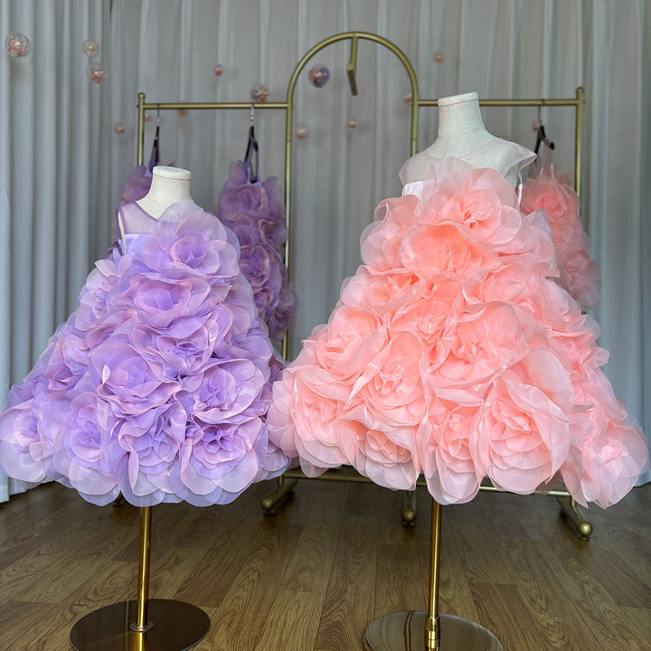 DreamyVow Luxury Arabic Elegant Lilac Girl Dress Flowers Princess Kids Wedding Birthday Party Ball Gown First Communion J223-DreamyVow