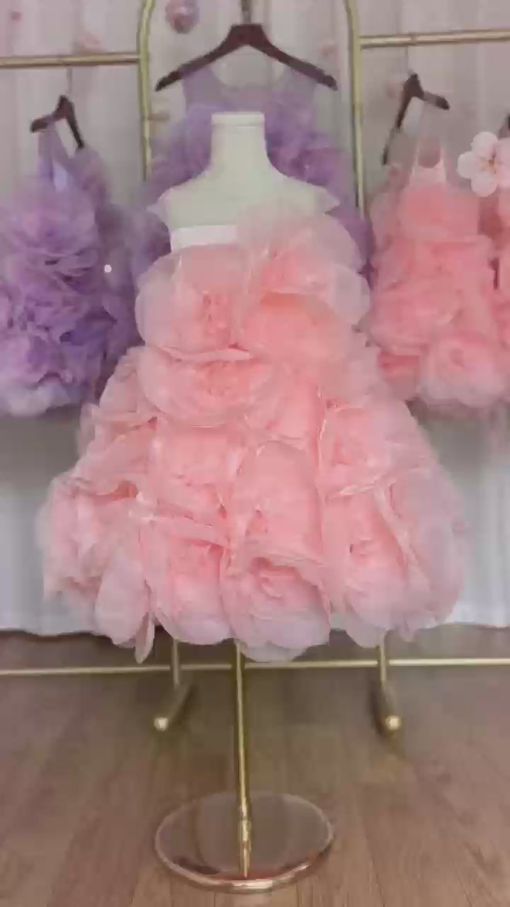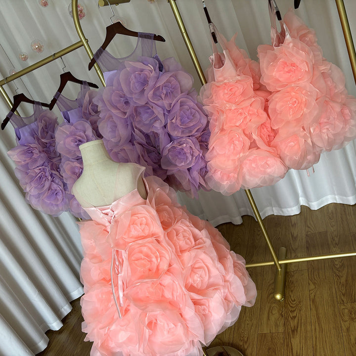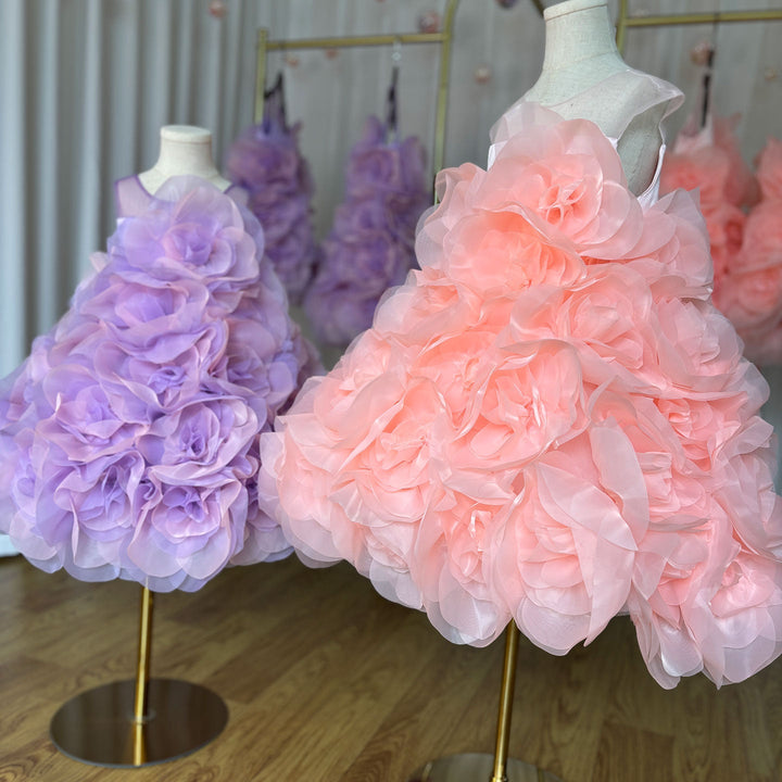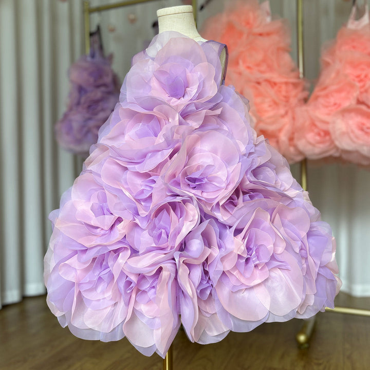 Luxury Arabic Elegant Lilac Girl Dress Flowers Princess Kids J223