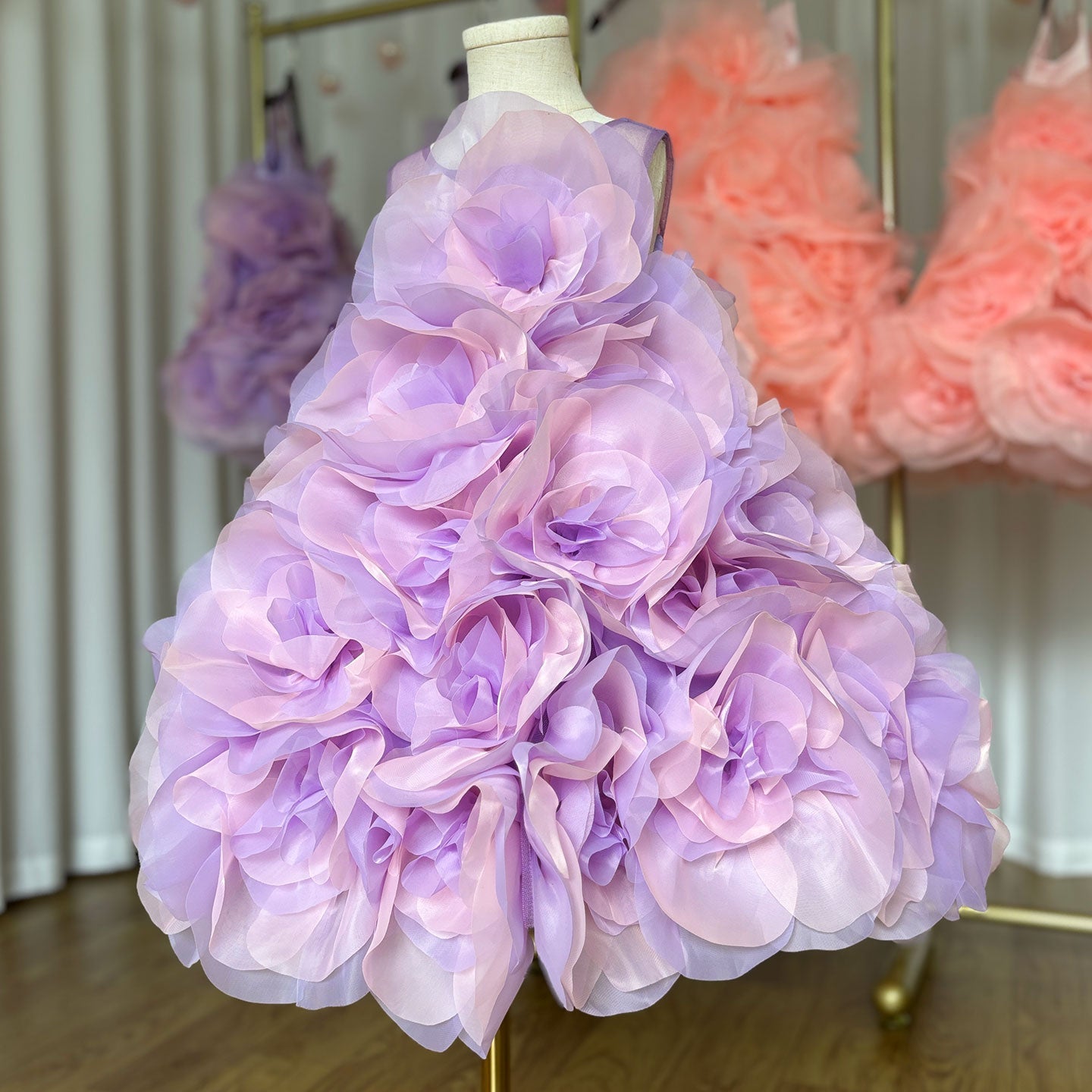 Indulge in a dreamy and luxurious experience with our Elegant Lilac Girl Dress. Adorned with intricate flowers, this Arabic-inspired ball gown is perfect for weddings, birthdays, and first communions. Turn heads and make memories with this stunning dress.
