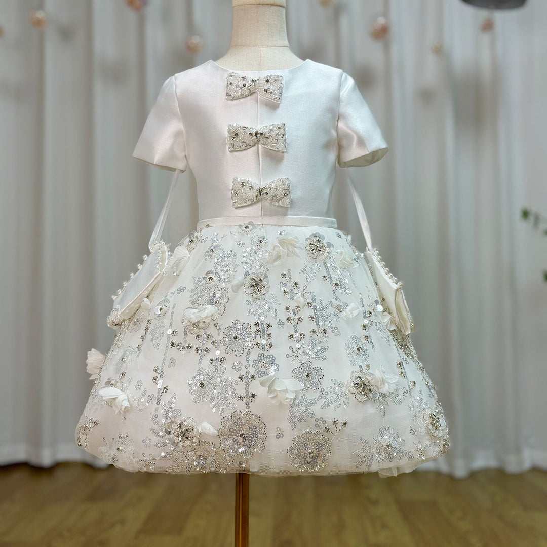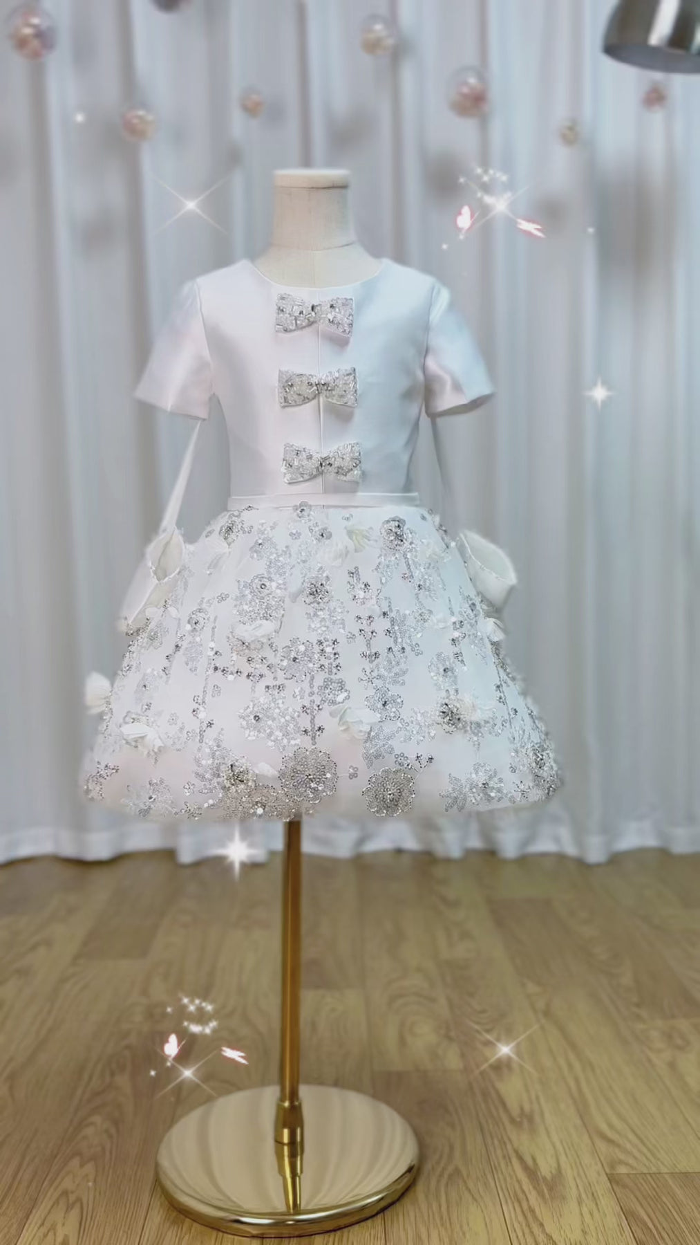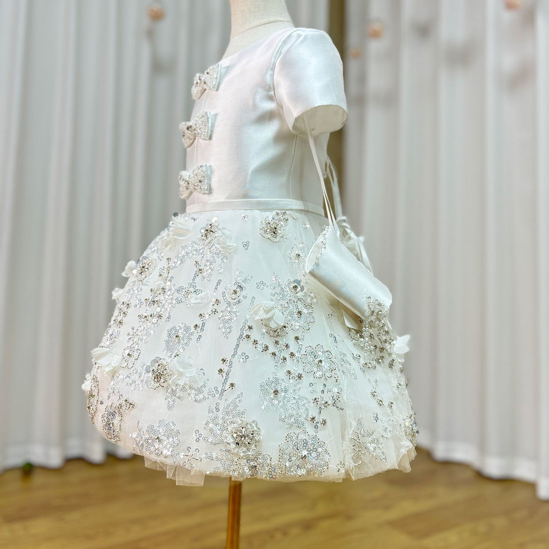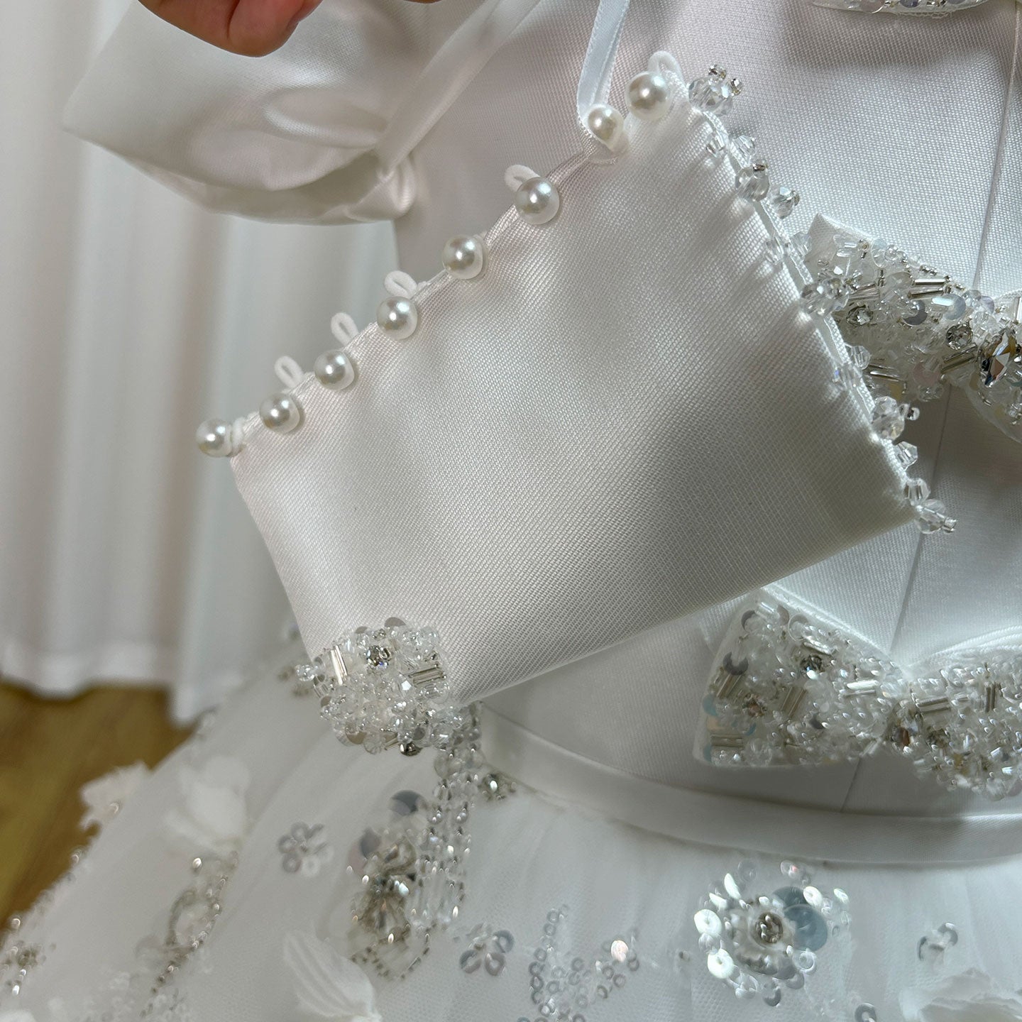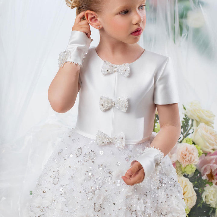 Luxury White Girl Dress Bow Handmade Flowers with Glove J357