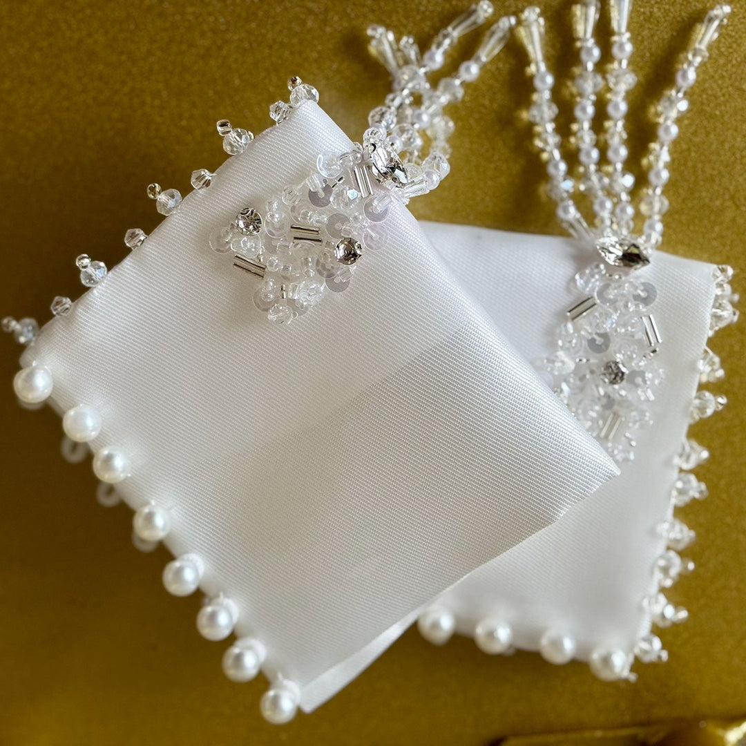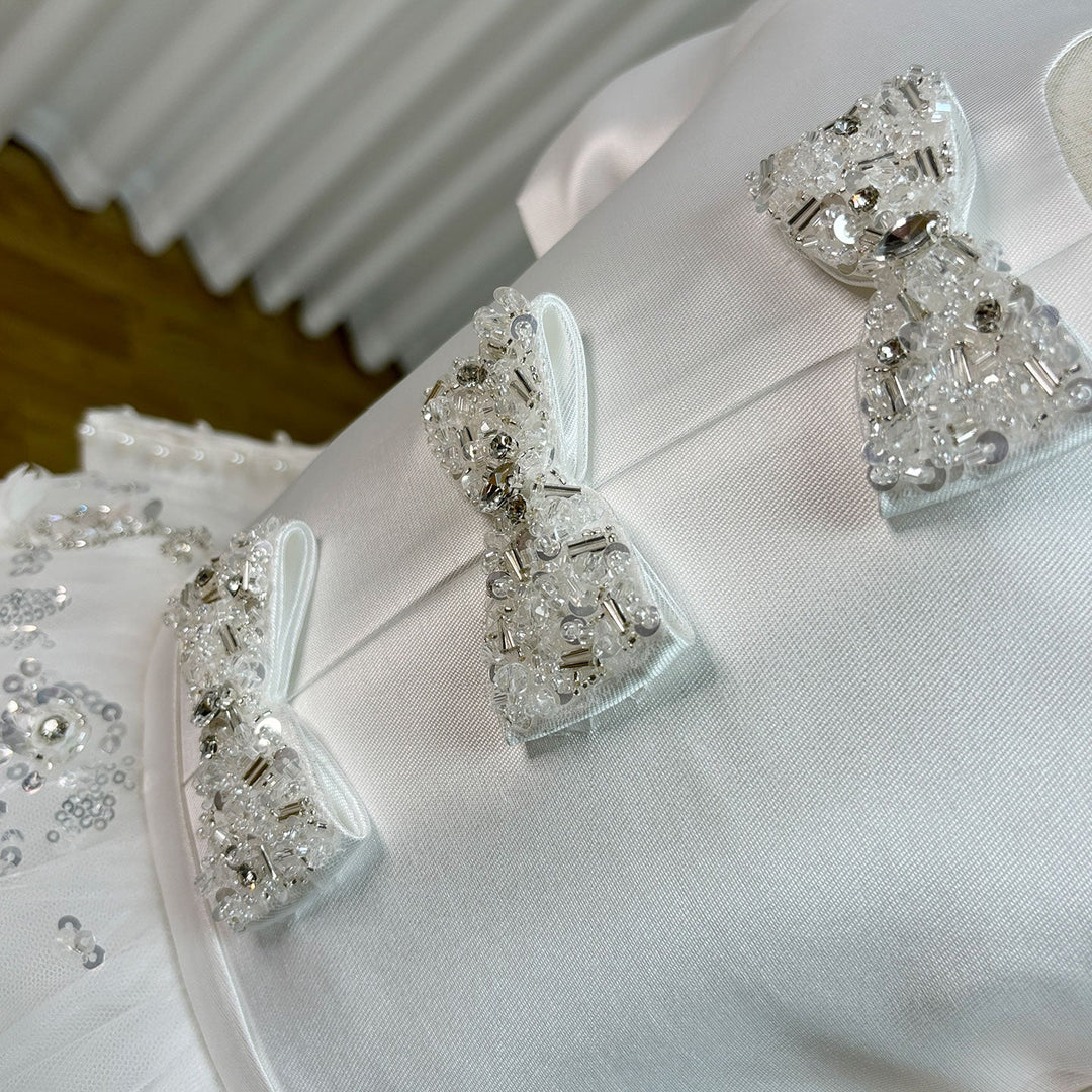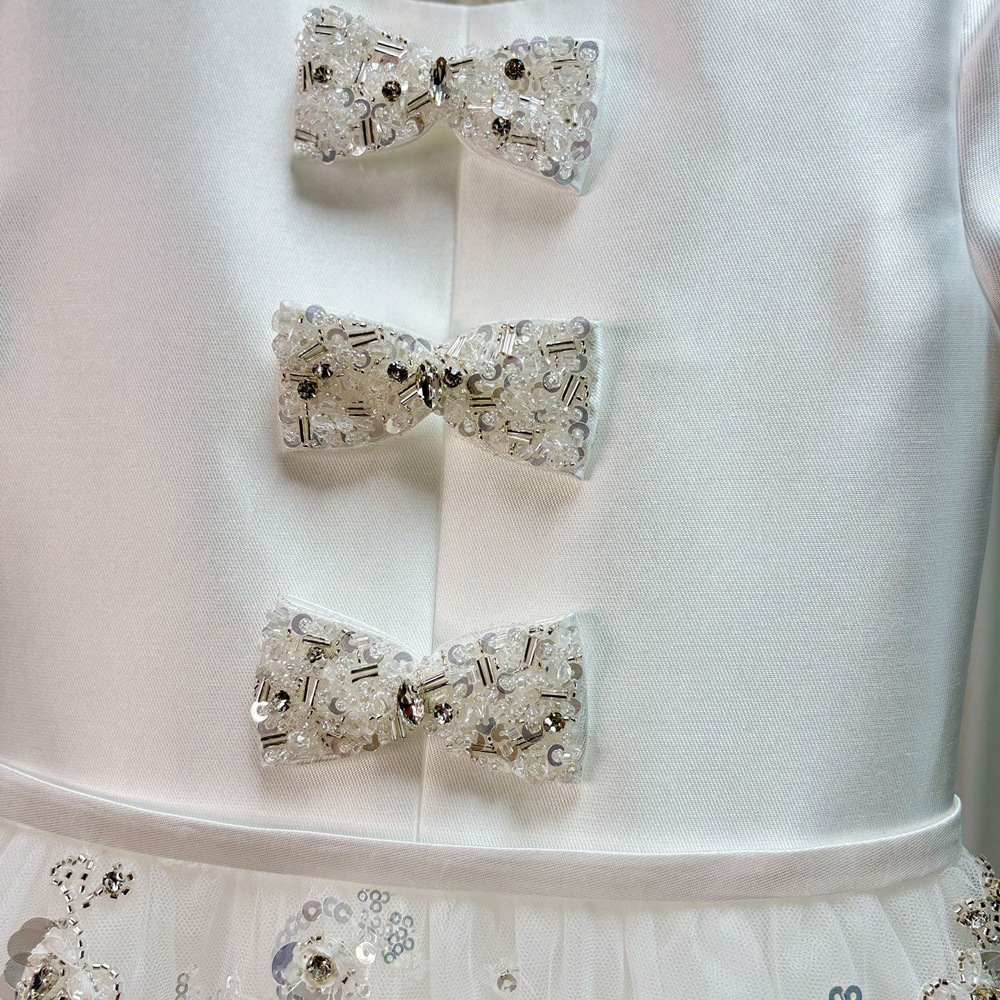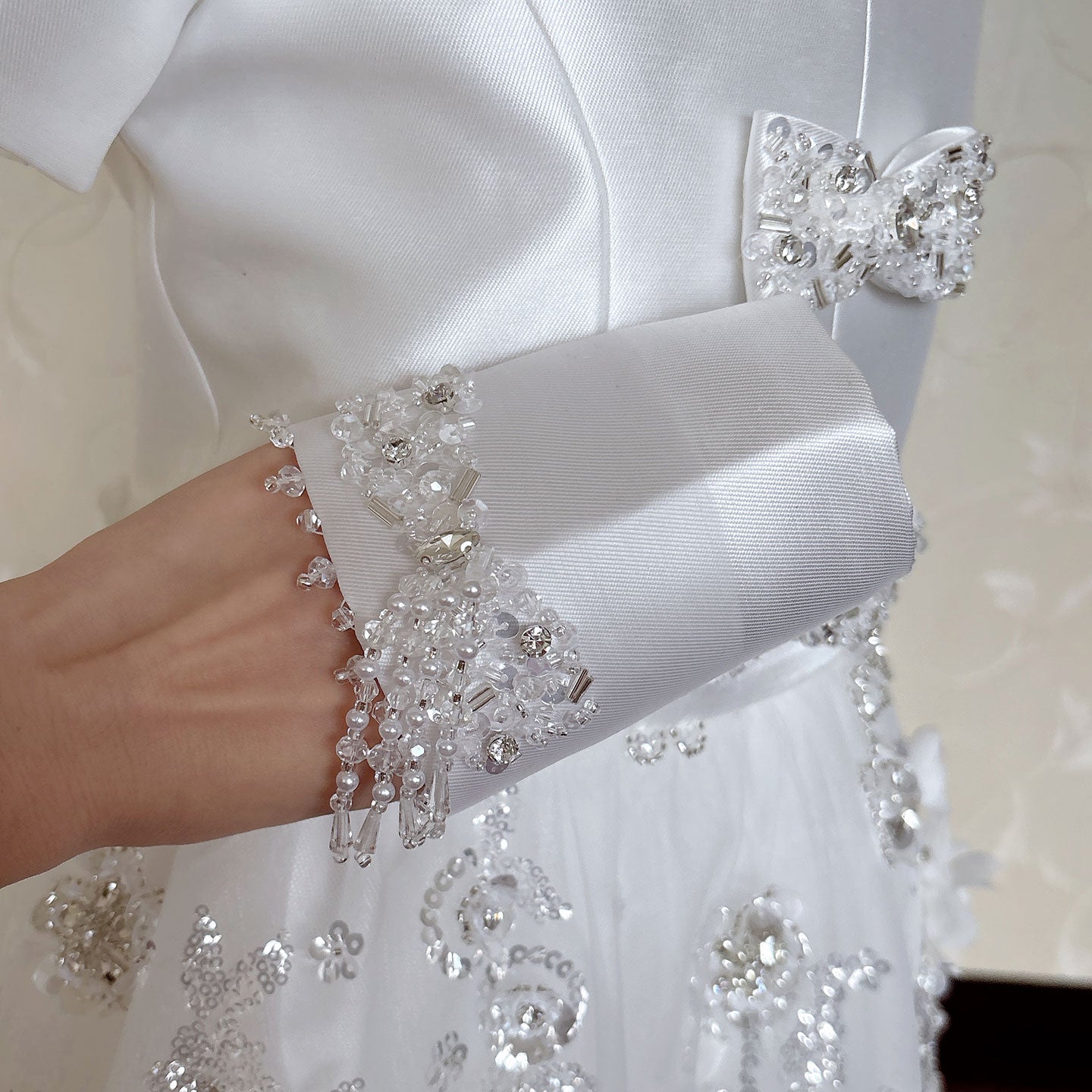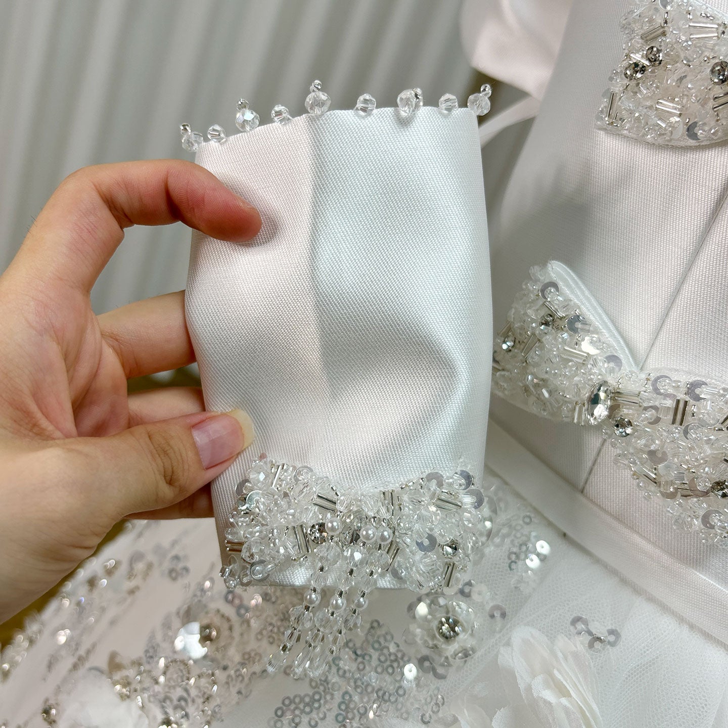 Luxury White Girl Dress Bow Handmade Flowers with Glove J357