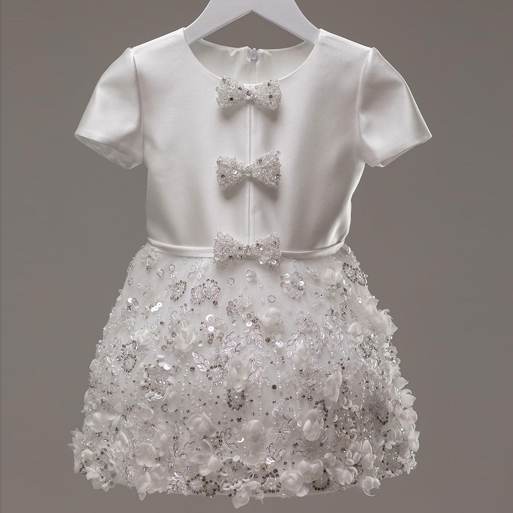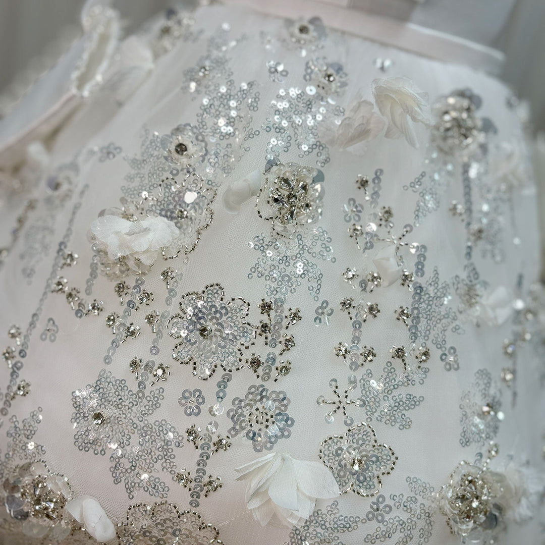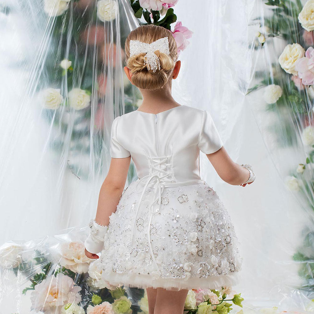 Impress every guest with this Dreamy Vow Luxury Dubai White Girl Dress. 3D flowers, delicate beading, and a stunning ball gown design make this perfect for weddings, birthdays, communions, and pageants. Give your child the ultimate dream dress for any special occasion.