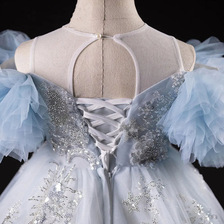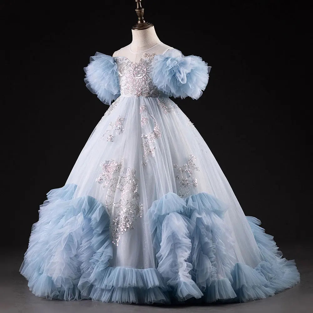 Luxury Blue Dubai Flower Girl Dress Beading Arabic J387