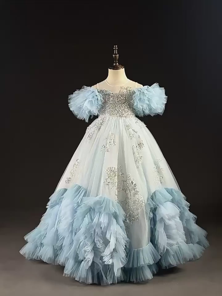 This Dreamy Vow Luxury Blue Dubai Flower Girl Dress is the perfect choice for a wedding, birthday party, or any special occasion. The dress features intricate beading and a beautiful Arabic princess design, making any little girl feel like royalty. With its long ball gown style, it offers both elegance and comfort for your child.