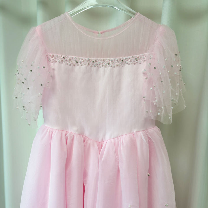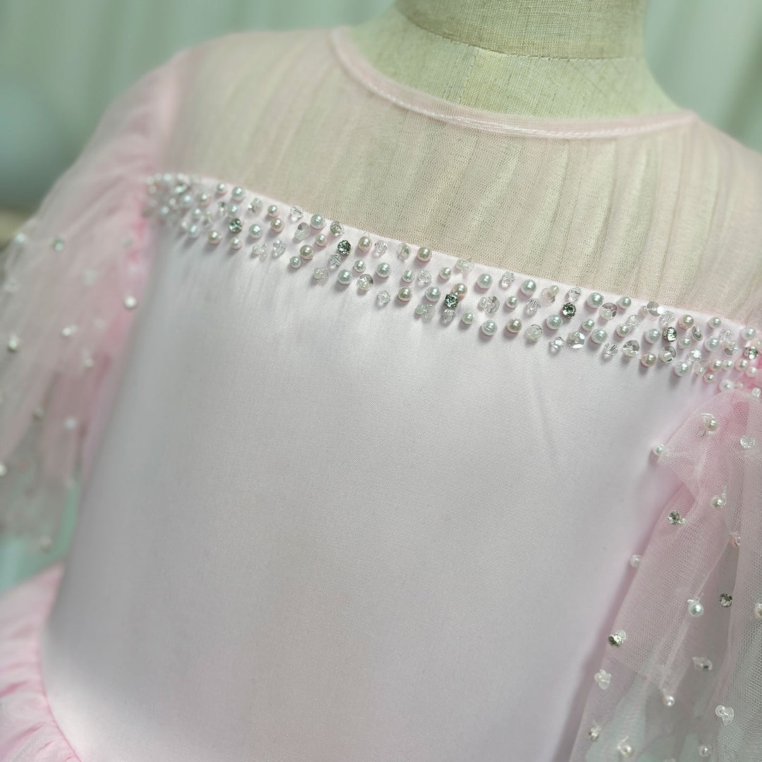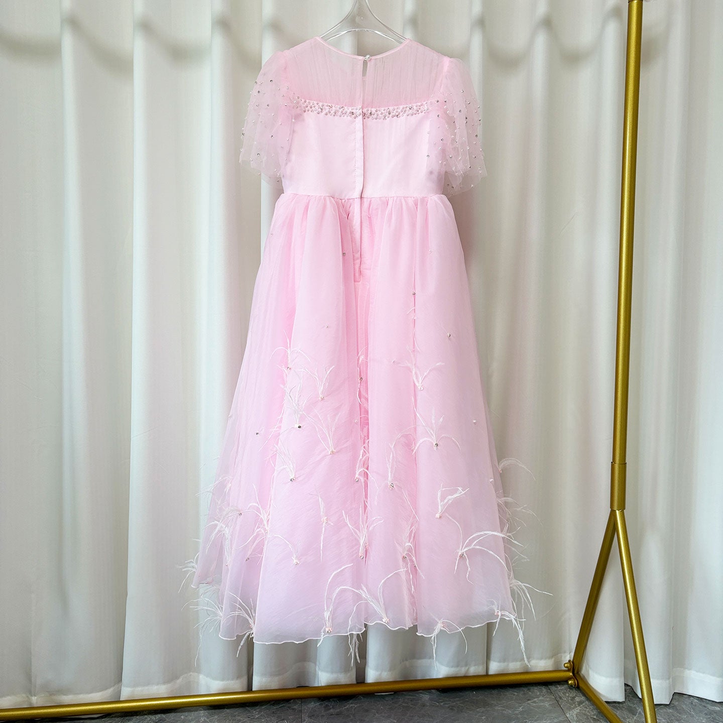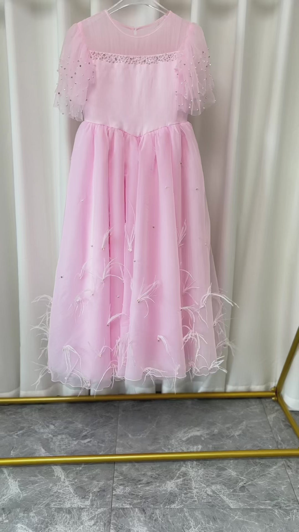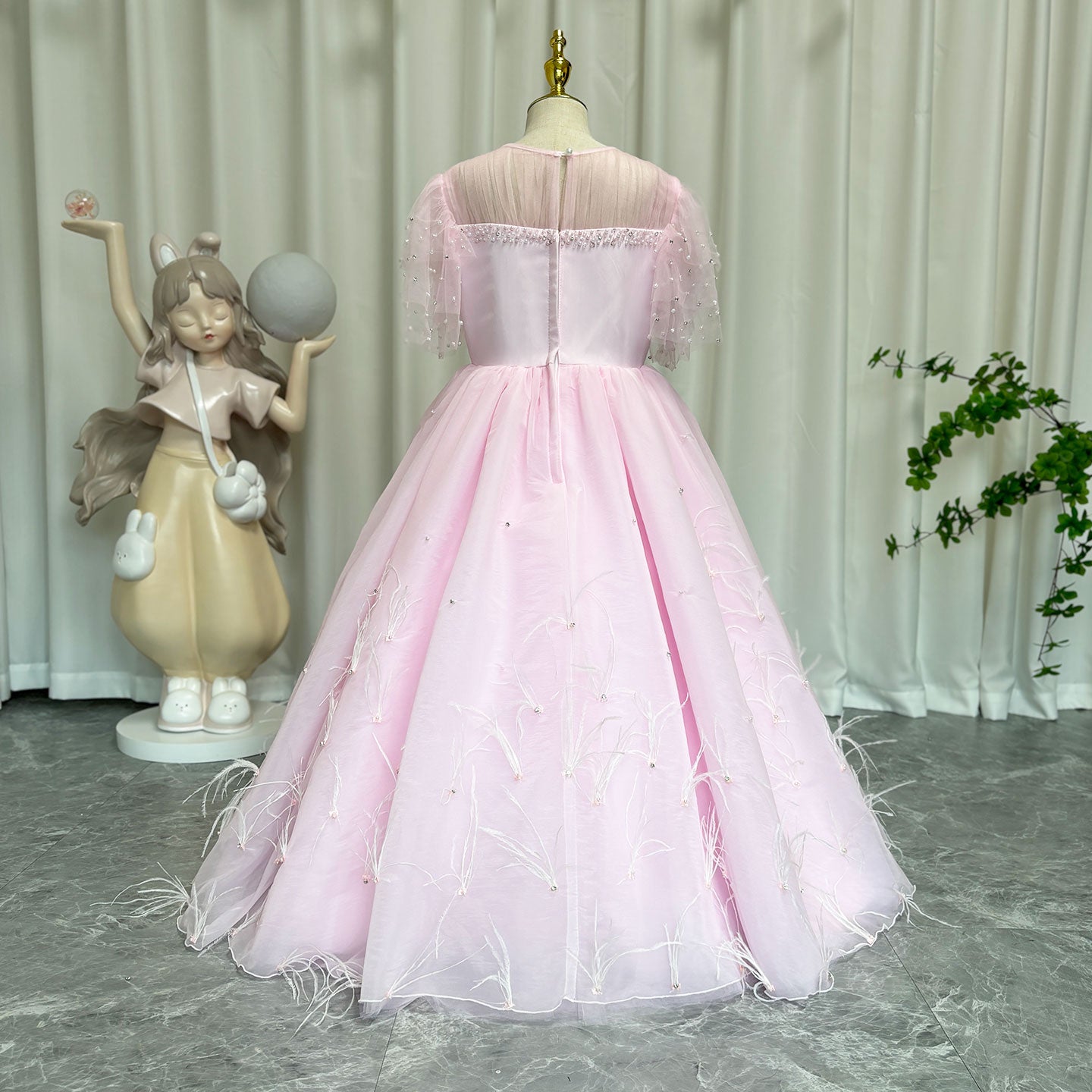 Luxury Blush Pink Girl Dress Feathers Beaded Princess J391