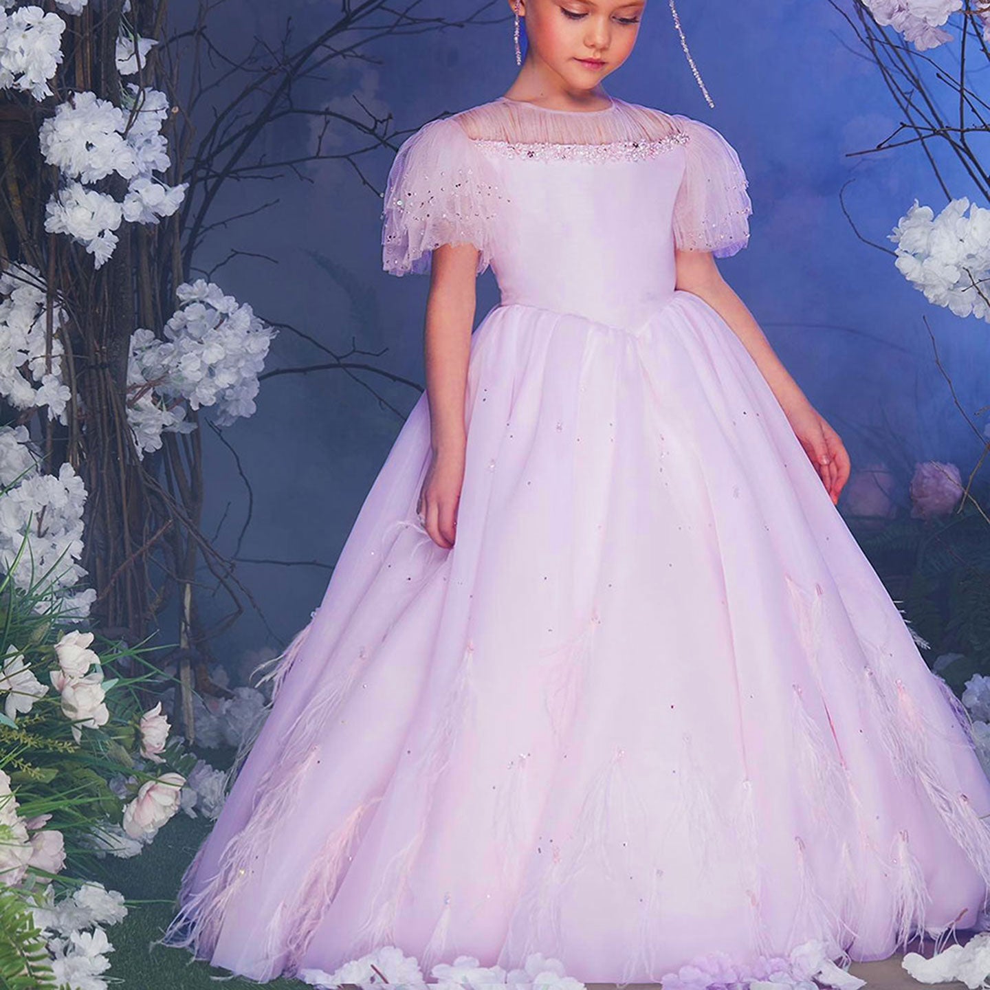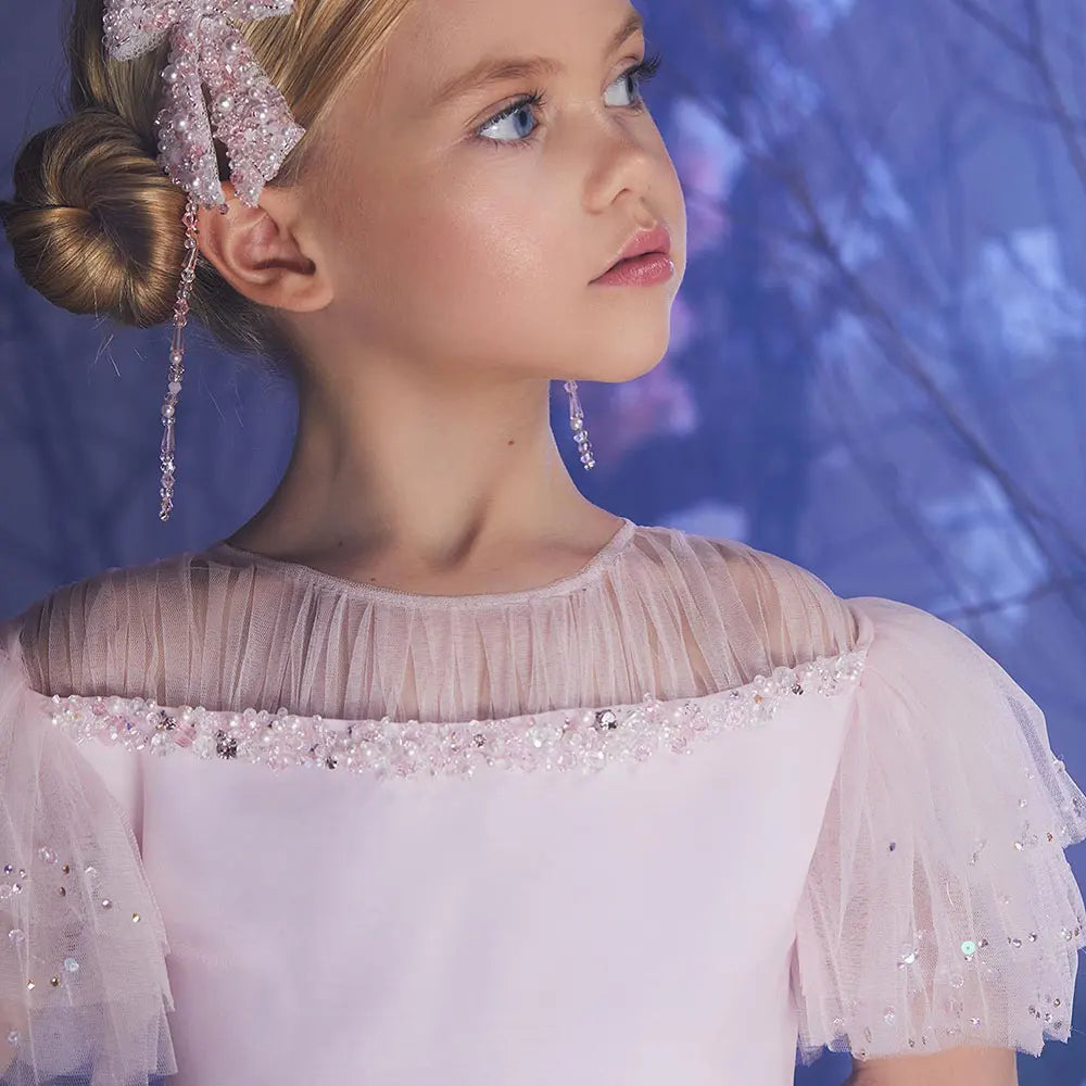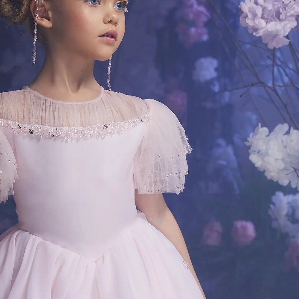 The Dreamy Vow Luxury Blush Pink Girl Dress is a stunning choice for any special occasion. Adorned with feathers and beading, this princess-like dress will make your little one feel like a royal. Perfect for weddings, birthdays, and first communions, this dress is sure to make the day even more memorable.