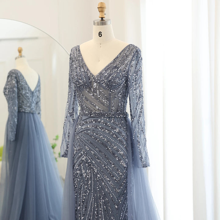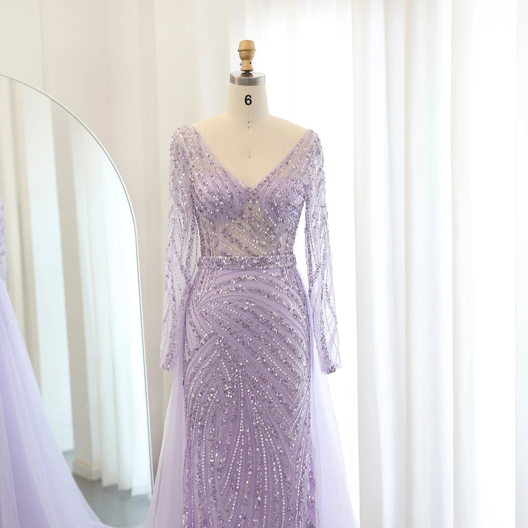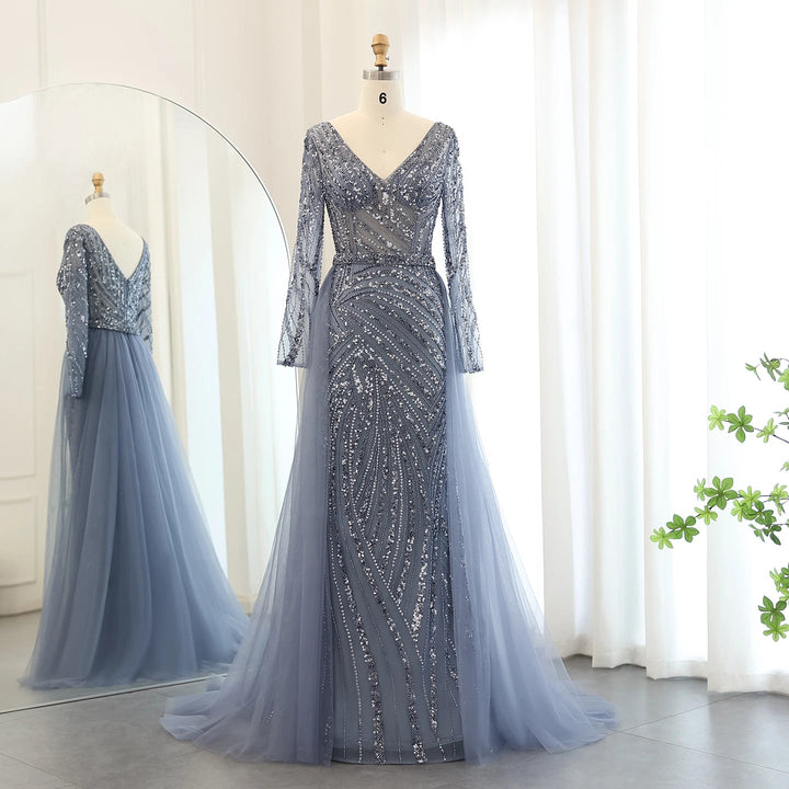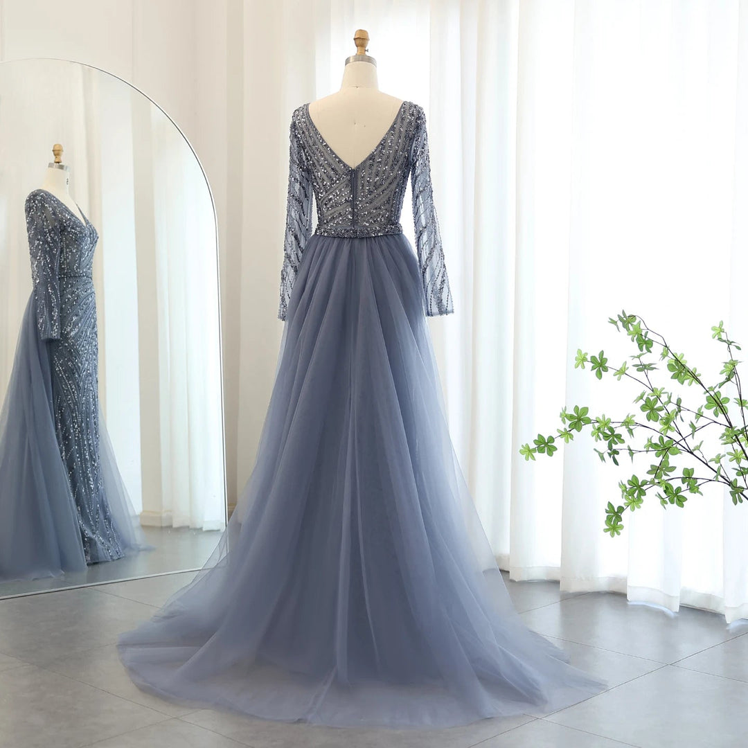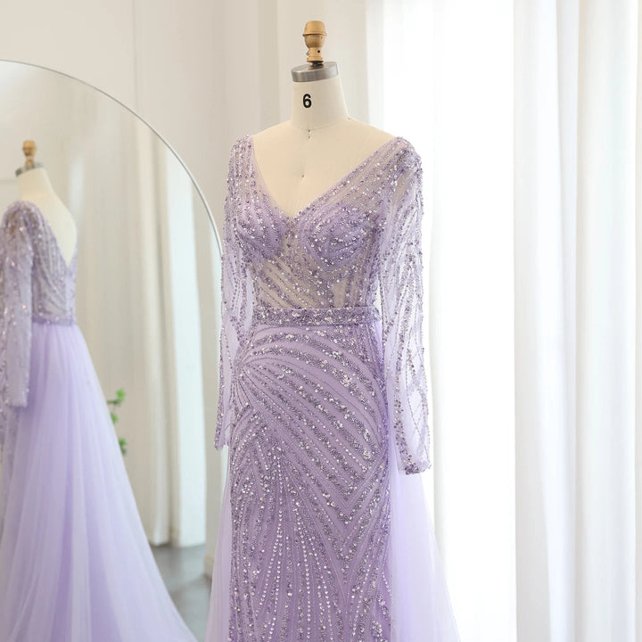 Dreamy Vow Luxury Dubai Blue Mermaid Muslim Evening Dresses with Detachable Skirt Sage Green Lilac Women Wedding Party SS432-DreamyVow