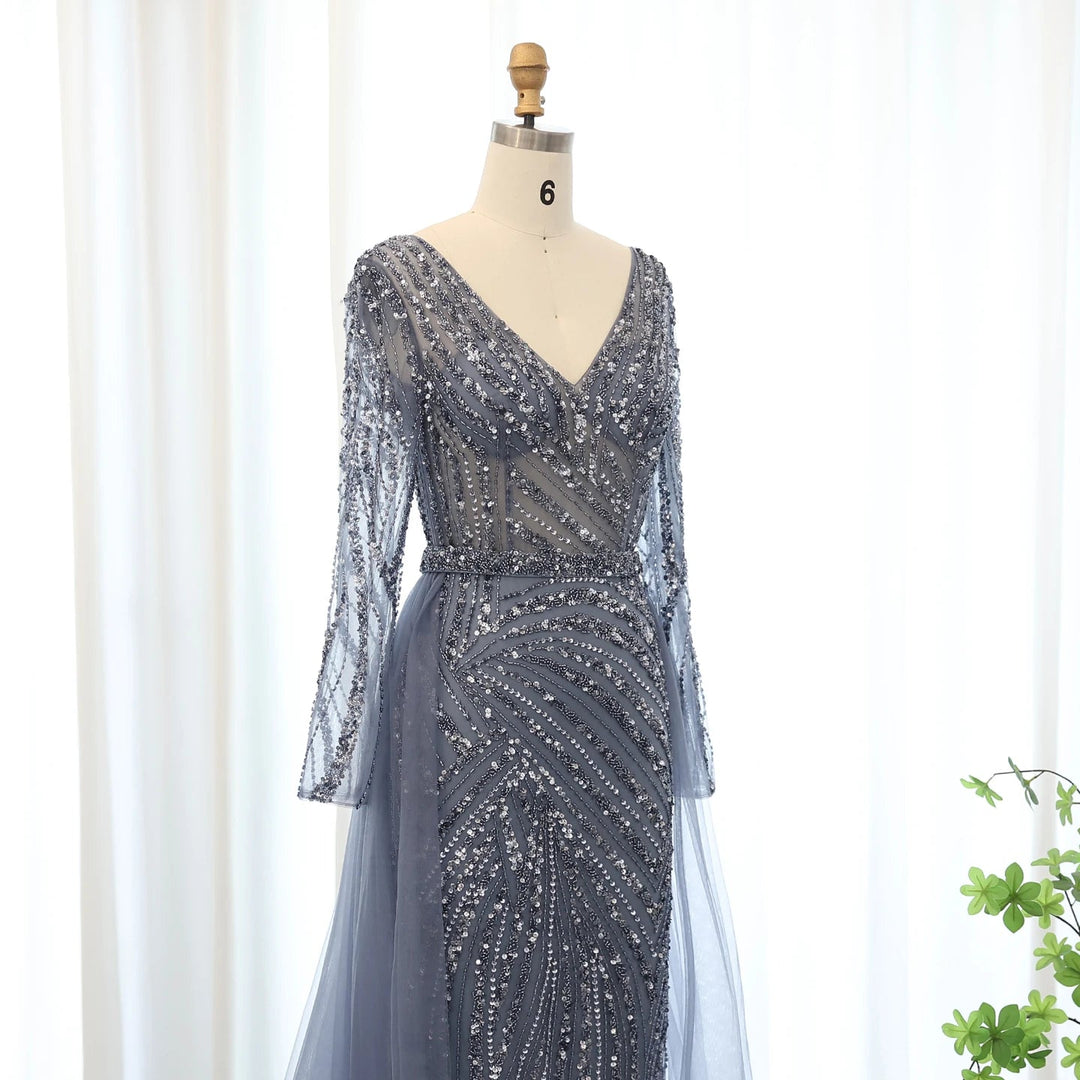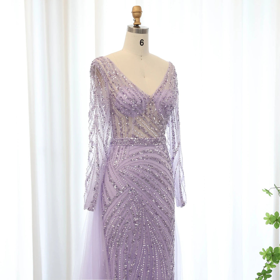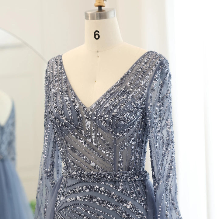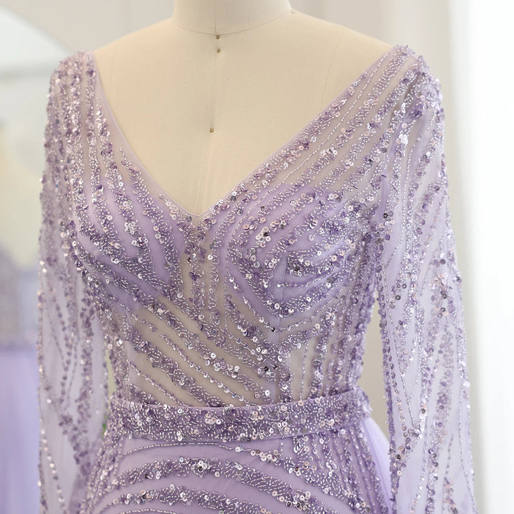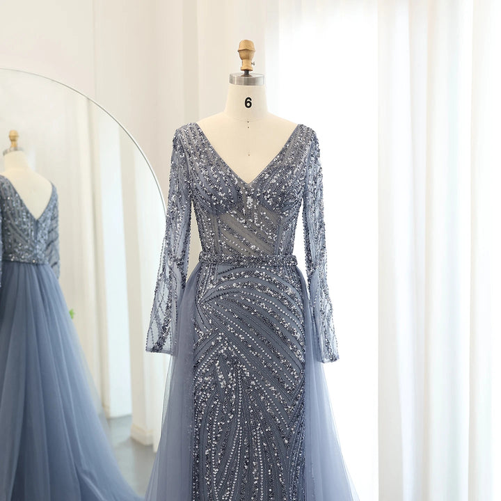 Dreamy Vow Luxury Dubai Blue Mermaid Muslim Evening Dresses with Detachable Skirt Sage Green Lilac Women Wedding Party SS432-DreamyVow