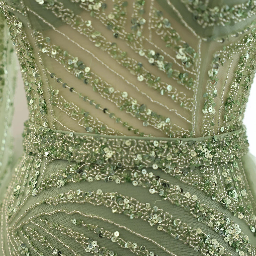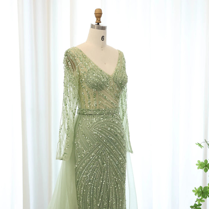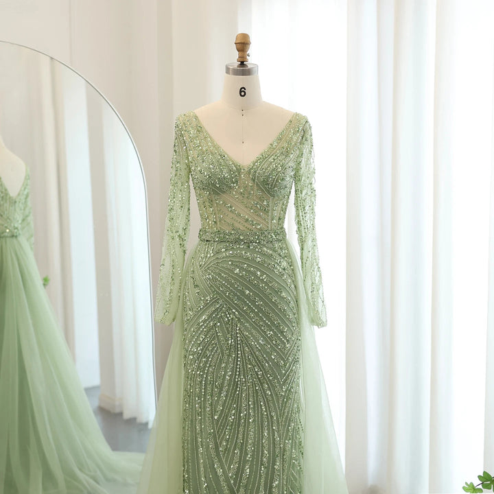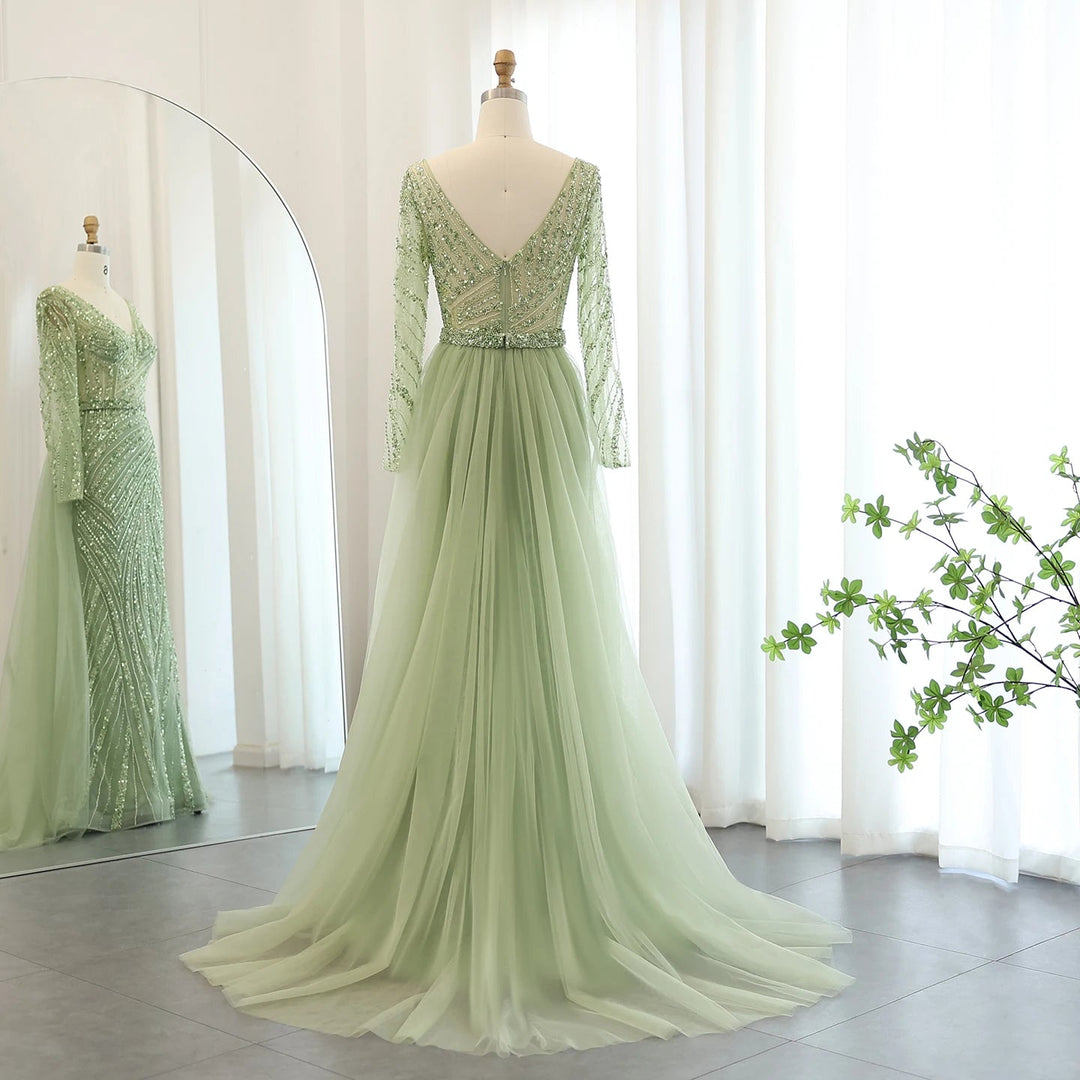 Dreamy Vow Luxury Sage green Mermaid Muslim Evening Dresses with Detachable Skirt SS432