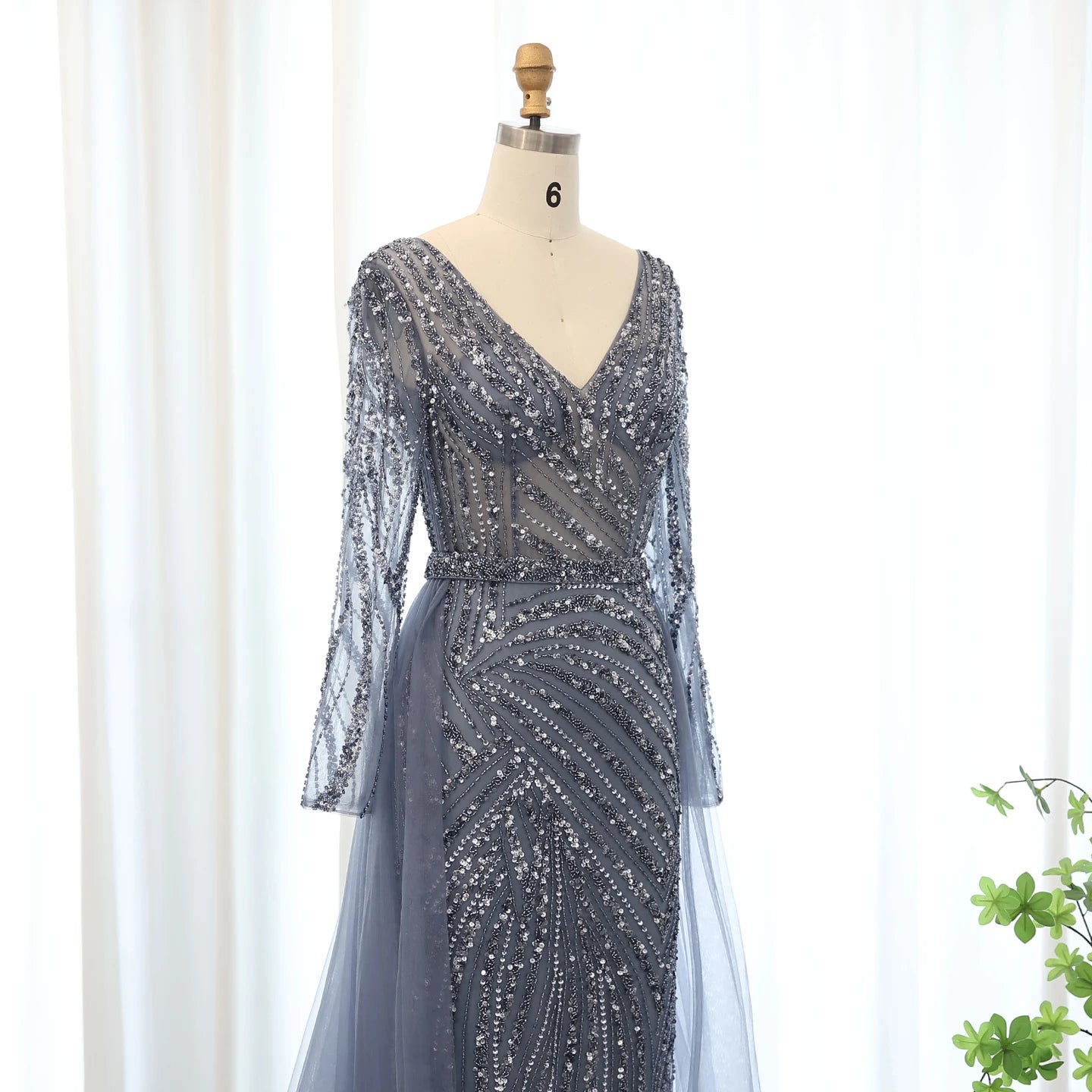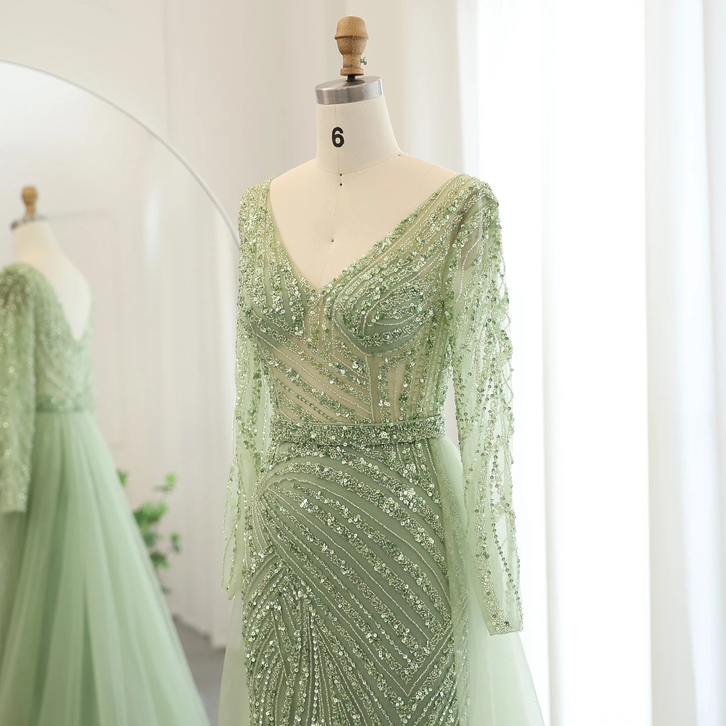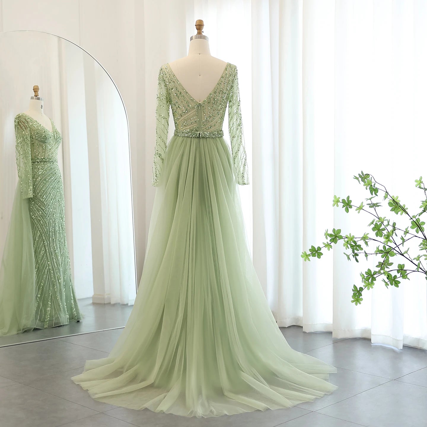 Dreamy Vow Luxury Sage green Mermaid Muslim Evening Dresses with Detachable Skirt SS432