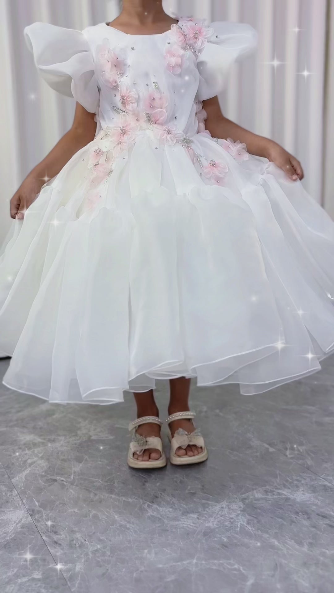 Impress every guest with this Dreamy Vow Luxury Dubai White Girl Dress. 3D flowers, delicate beading, and a stunning ball gown design make this perfect for weddings, birthdays, communions, and pageants. Give your child the ultimate dream dress for any special occasion.