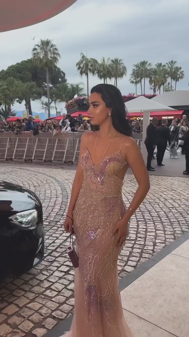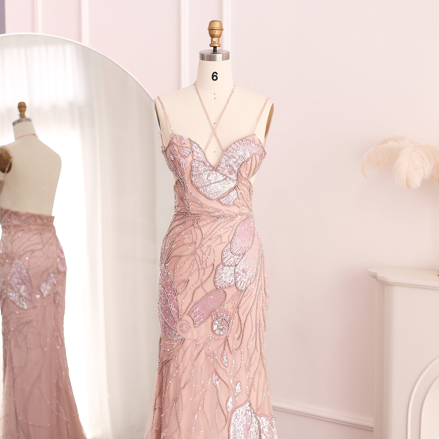 Elevate your fashion game with Dreamy Vow's Luxury Mermaid Pink Evening Dress. Featuring feather accents and a delicate scarf, it's perfect for a blue-themed wedding or prom night. The spaghetti straps add a touch of elegance. Get ready to turn heads with SS478.