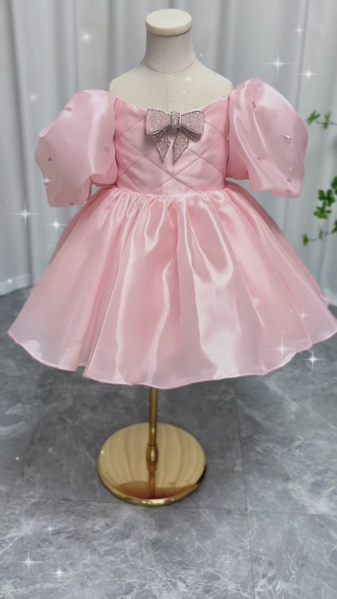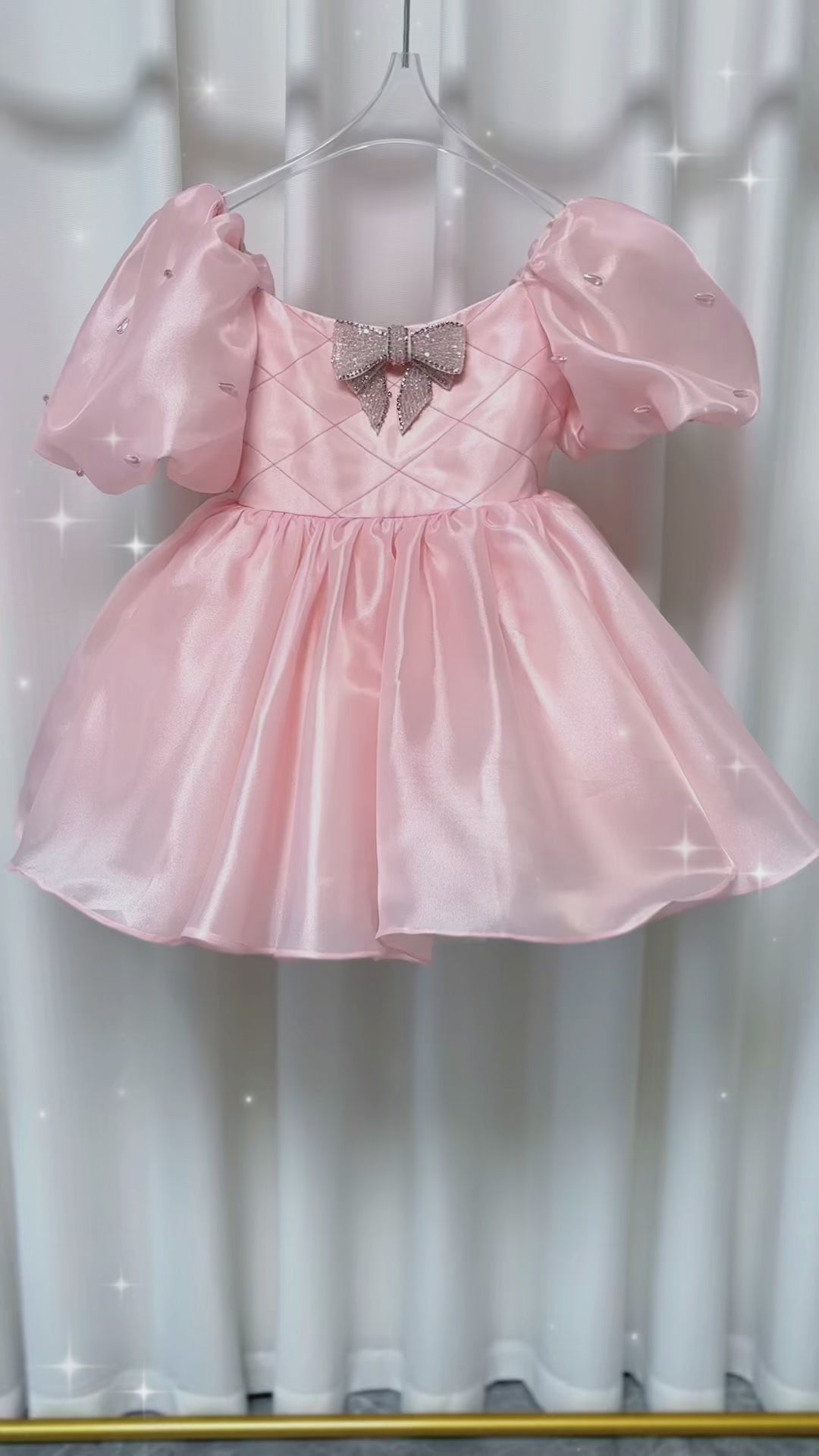 This luxurious pink dress features stunning beadwork, puffy sleeves, and a beautiful bow, making it the perfect choice for your little one's birthday, wedding, or communion party. Its Dubai princess design adds an extra touch of charm and elegance. Give your child the gift of feeling like royalty with Dreamy Vow Luxury Pink Girl Dress.=