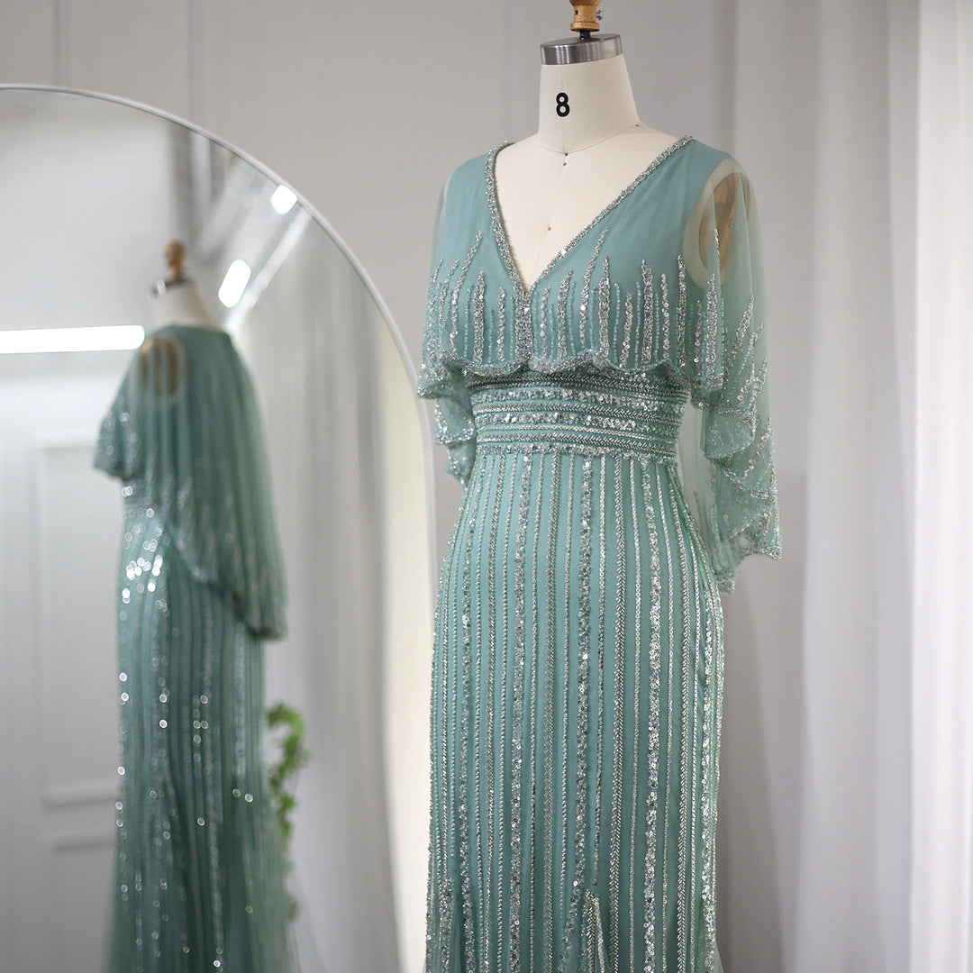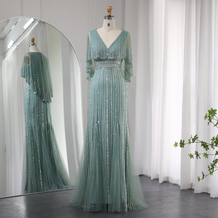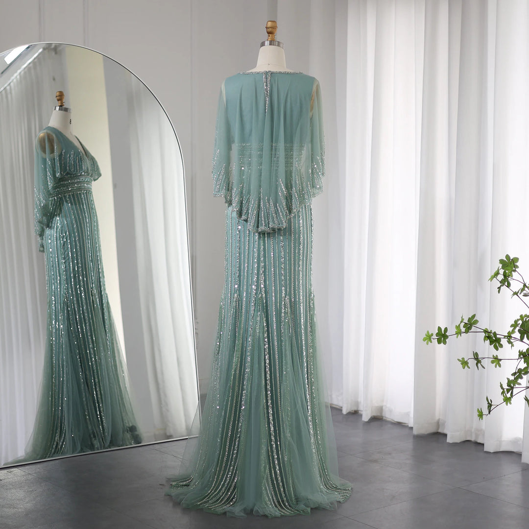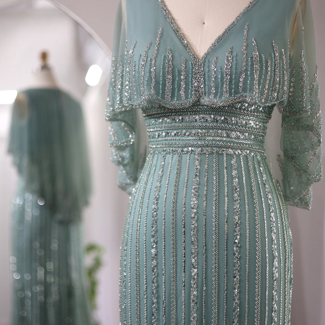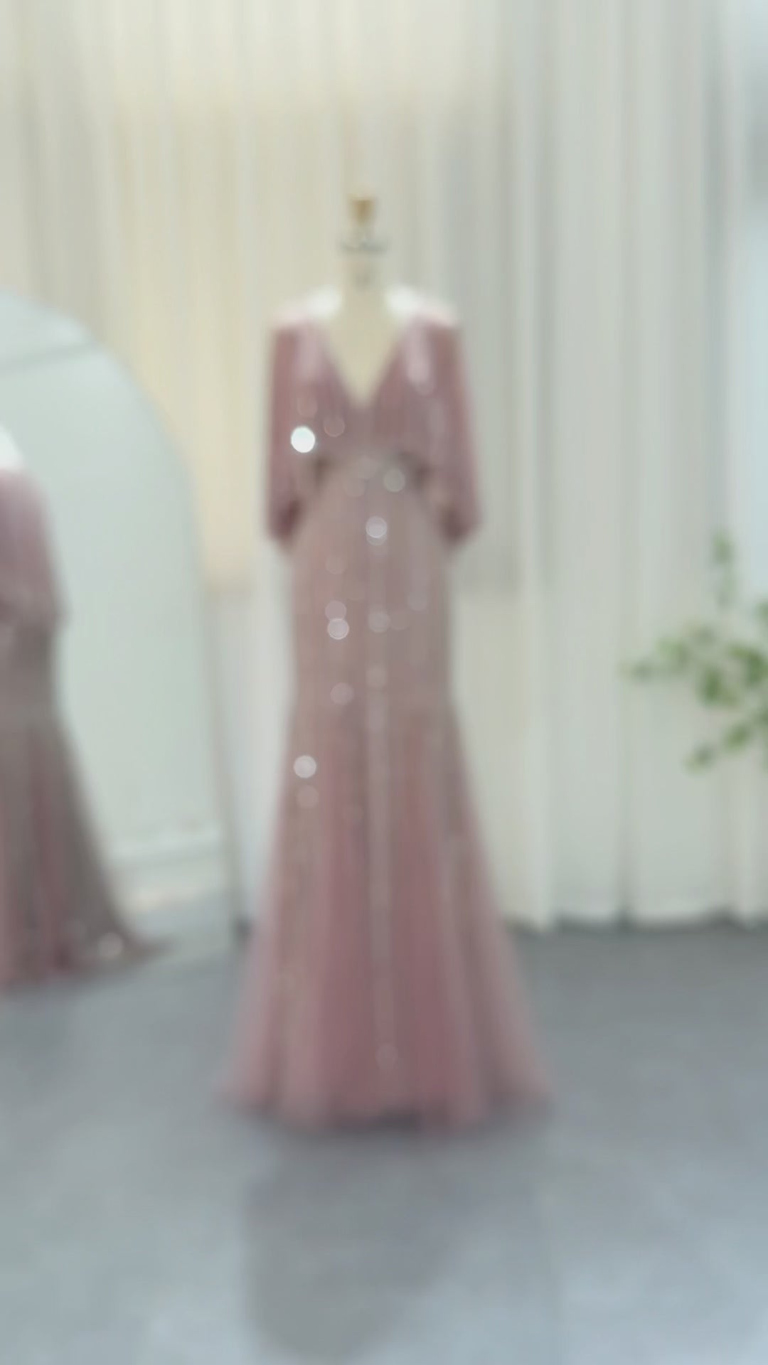 Luxury Pink Mermaid Dubai Evening Dresses with Cape SS284