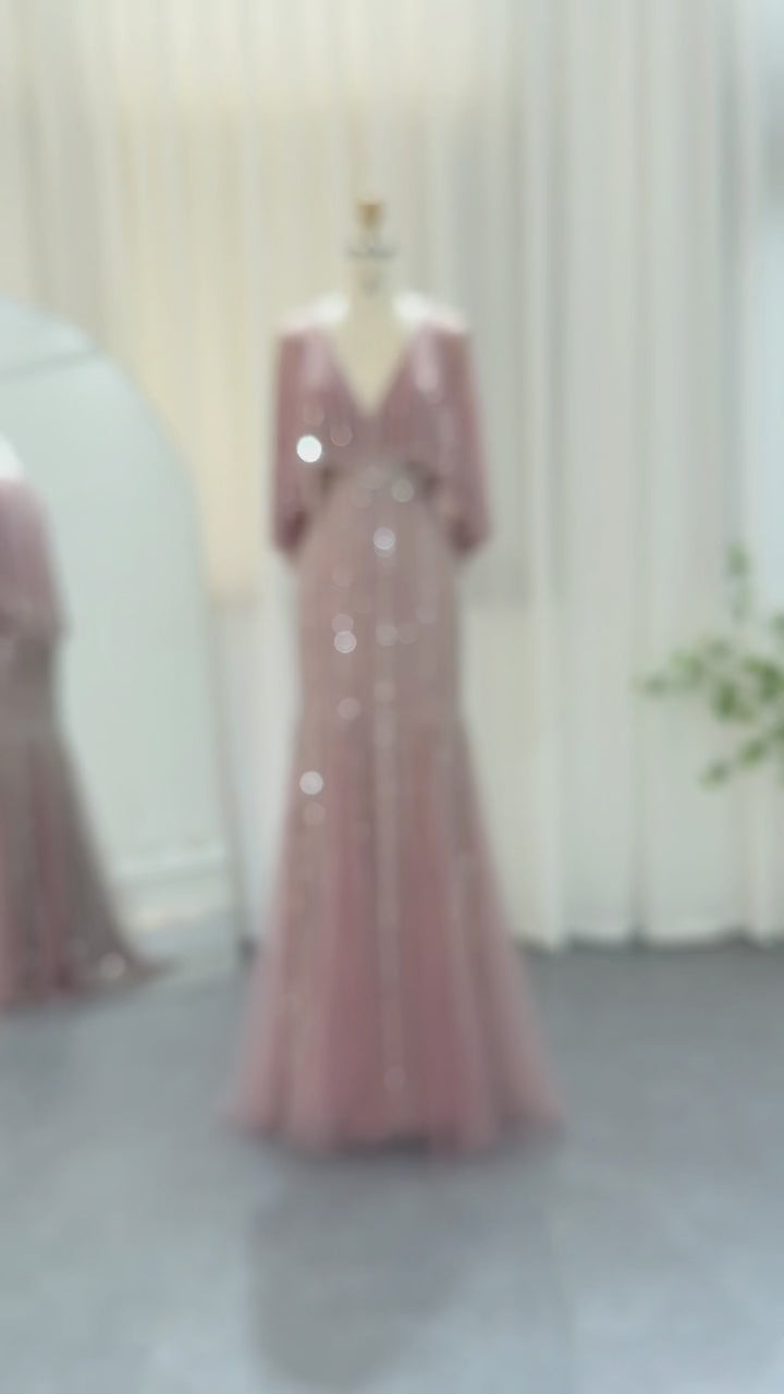Introducing the Dreamy Vow Luxury Pink Mermaid Dubai Evening Dress with Cape SS284. This elegant and luxurious dress features a stunning mermaid silhouette and a beautiful cape, making it the perfect choice for any special occasion. Made with high-quality materials, this dress exudes opulence and will leave you feeling like a true princess. Elevate your evening look with this dreamy dress.