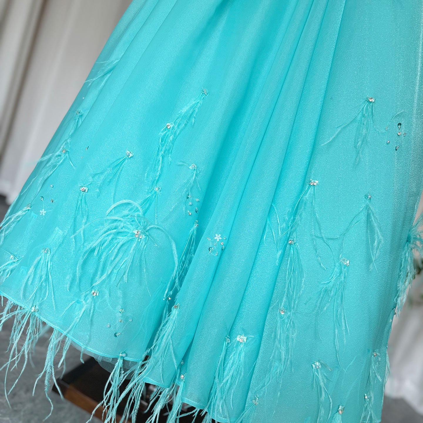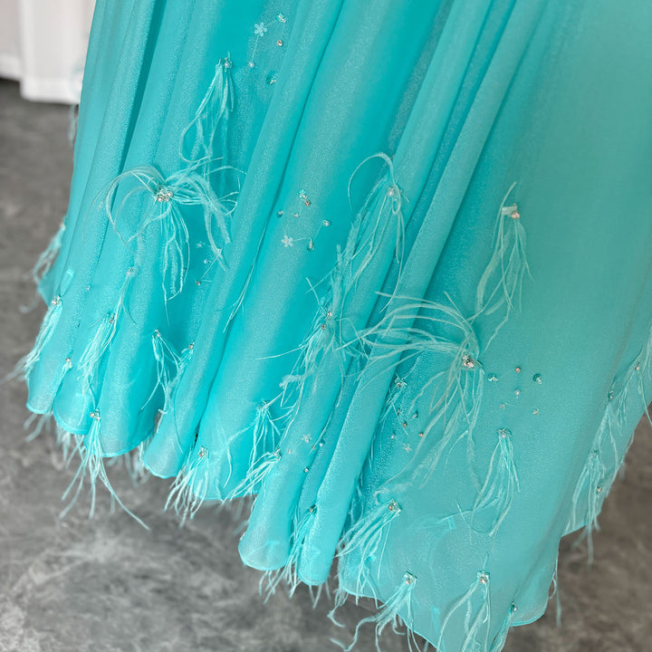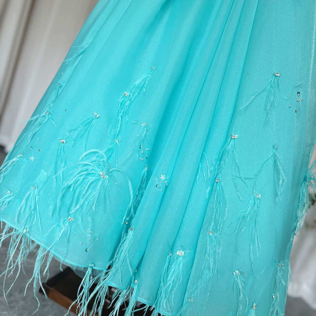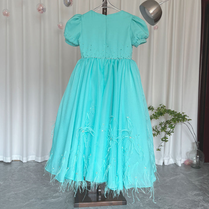 Luxury Turquoise Dubai Girl Dress Beaded Feathers Arabic Princess J380