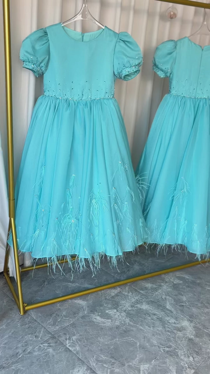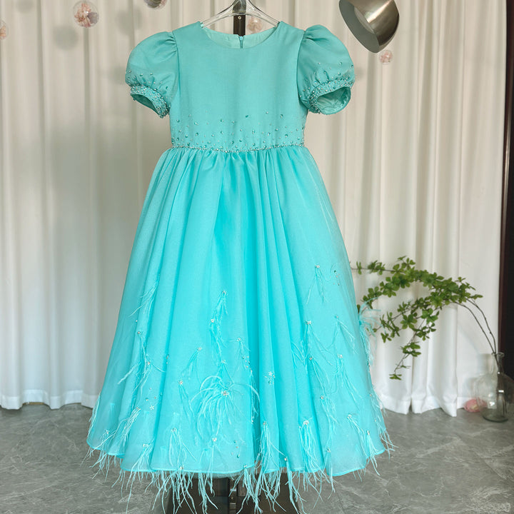 Introduce your little one to a world of luxury and elegance with the Luxury Turquoise Dubai Girl Dress. Beautifully adorned with beading and feathers, this Arabic princess-style gown is perfect for weddings, birthdays, and parties. Made with the highest quality materials, your child will feel like a true royalty in this stunning ball gown.
