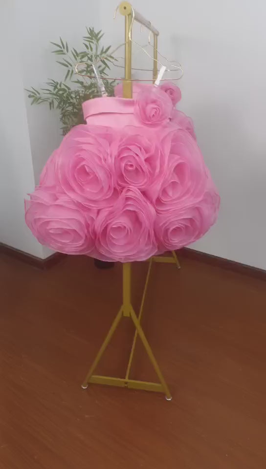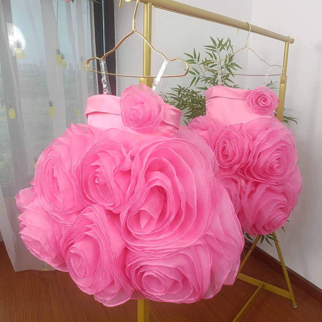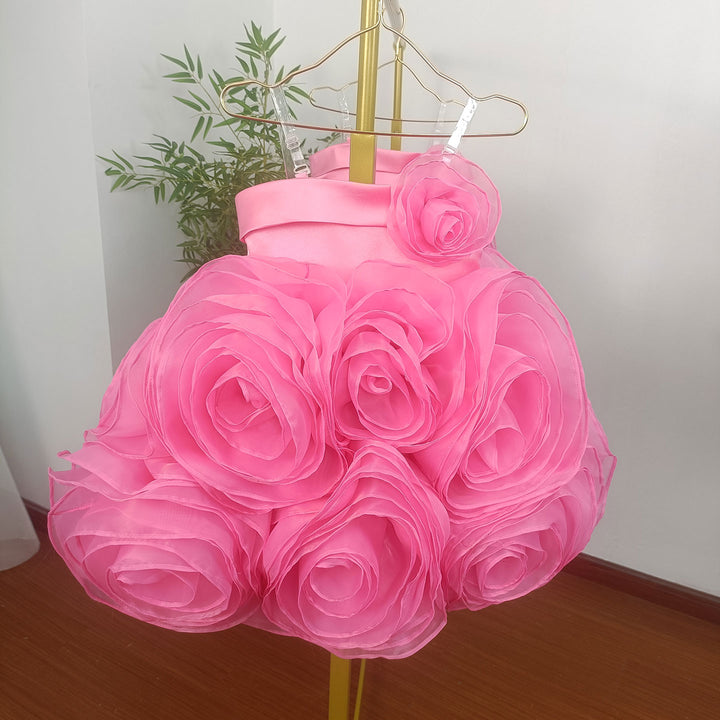 Fuchsia Girl Dress with Handmade Flowers White Birthday Gown J157