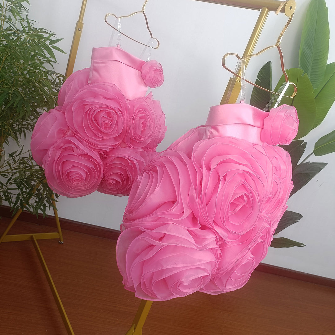 DreamyVow Elegant Pink Arab Girl Dress Handmade Flowers V-Neck Kids Princess Birthday Wedding Party Gown J158-DreamyVow
