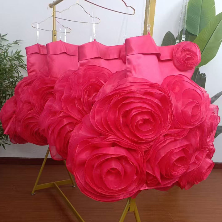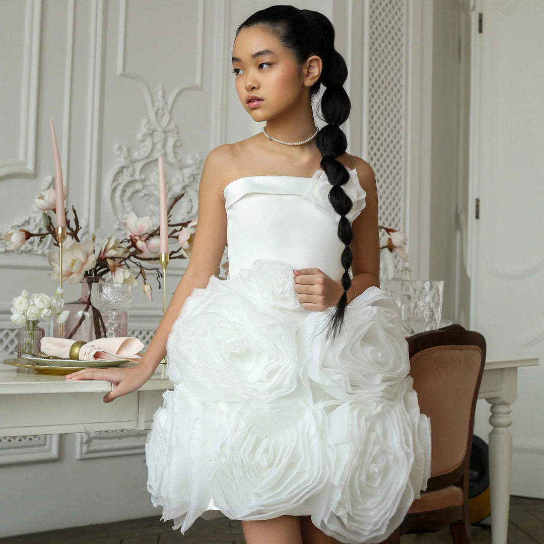 Look no further for the perfect dress for your little princess! The DreamyVow Elegant Fuchsia Girl Dress features stunning handmade flowers and a beautiful white design, making it the ideal choice for any birthday, wedding, or party. With expert craftsmanship and attention to detail, this dress will make your child feel like royalty.