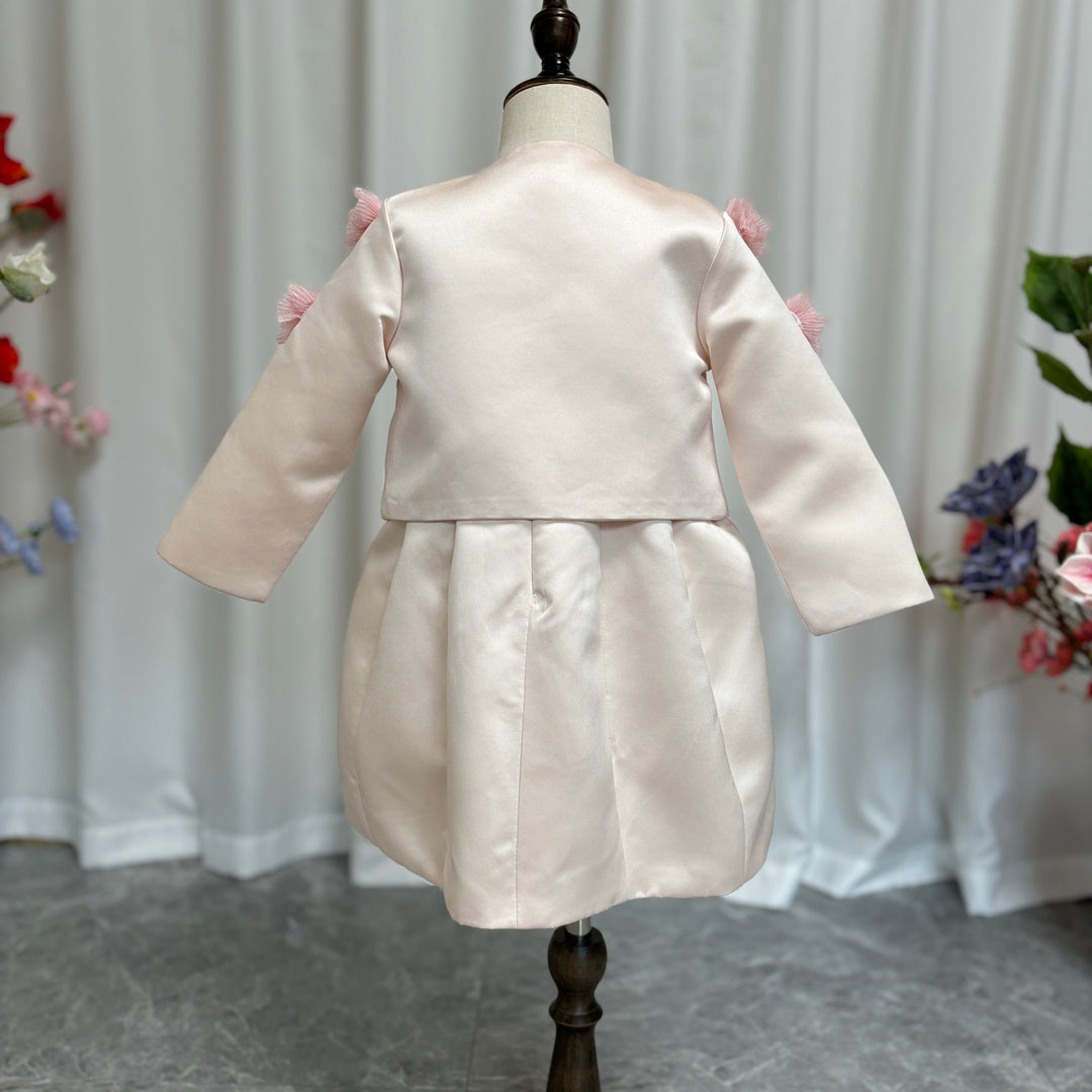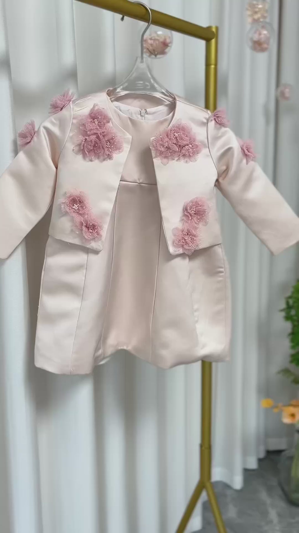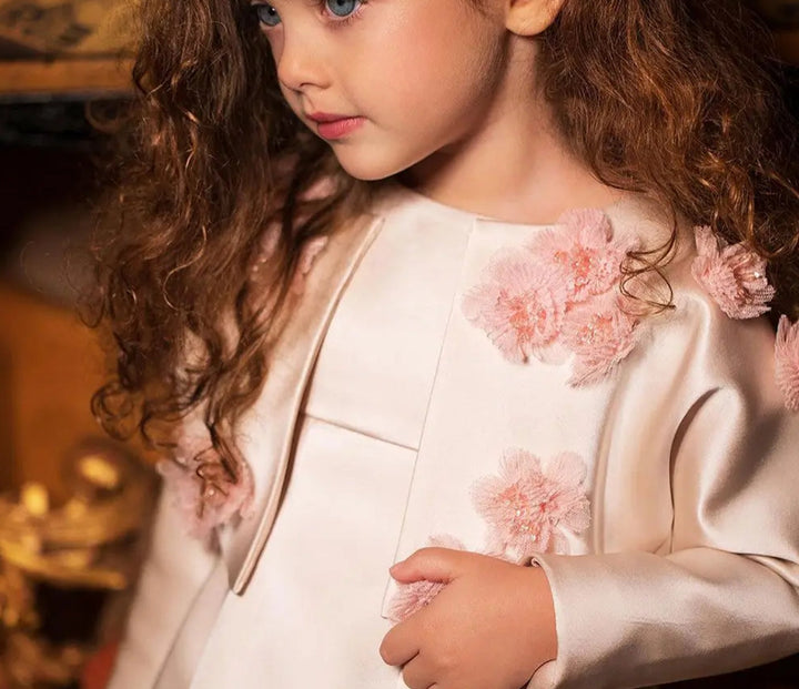 This DreamyVow Elegant Ivory Two Piece Girl Dress is the perfect choice for weddings, birthdays, and communions. The intricate 3D flower design on the satin material adds a touch of charm and elegance. Your little princess will feel like royalty in this stunning gown.