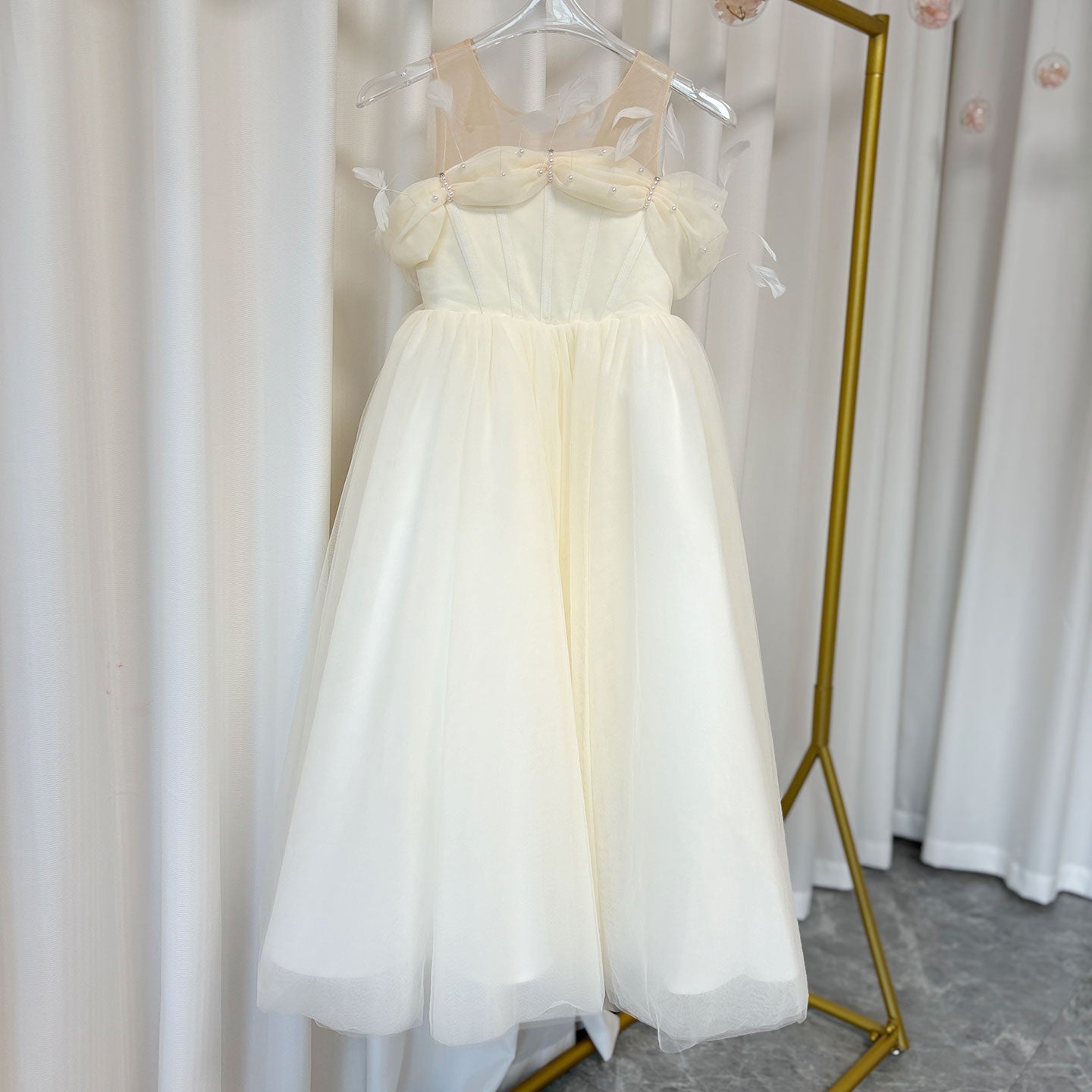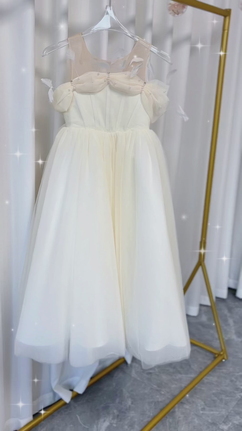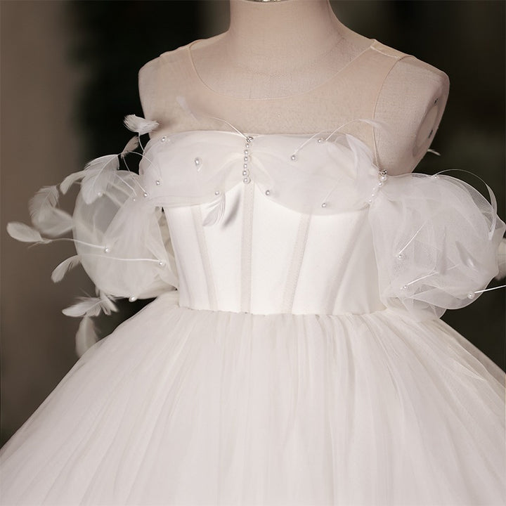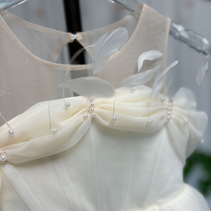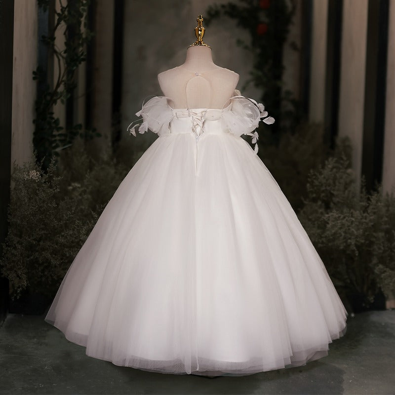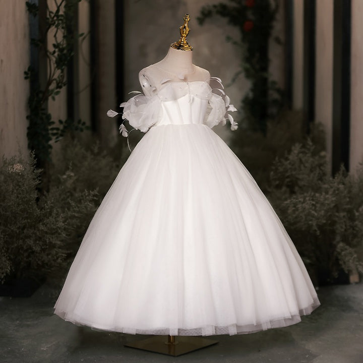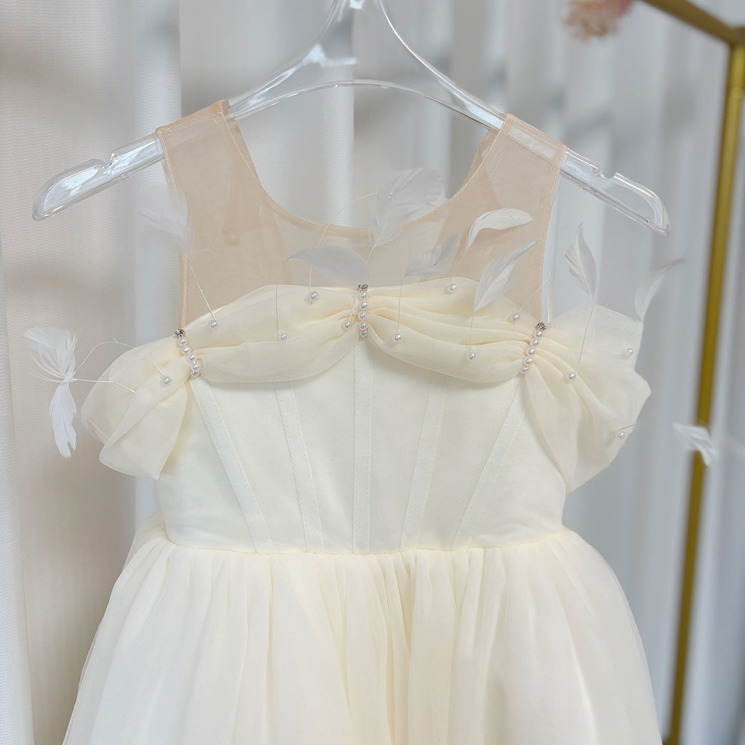 Make your little girl feel like royalty with our DreamyVow Elegant White Dubai Girl Dress. Adorned with pearls and feathers, this dress is fit for an Arab Princess on her special day. Perfect for weddings, birthdays, and proms. Get yours now and make her dreams come true.