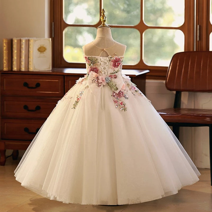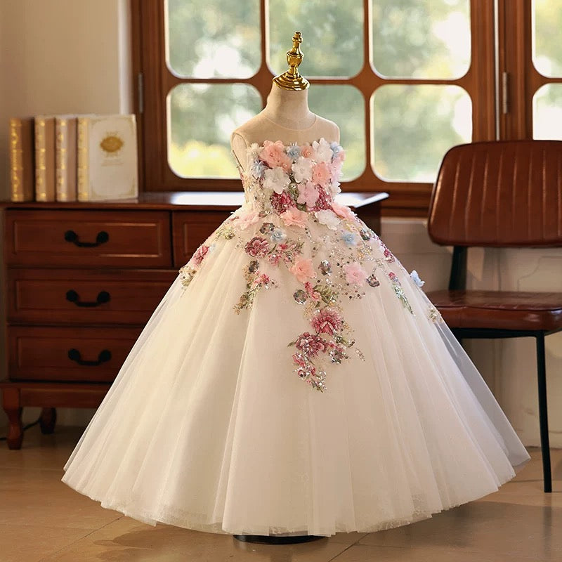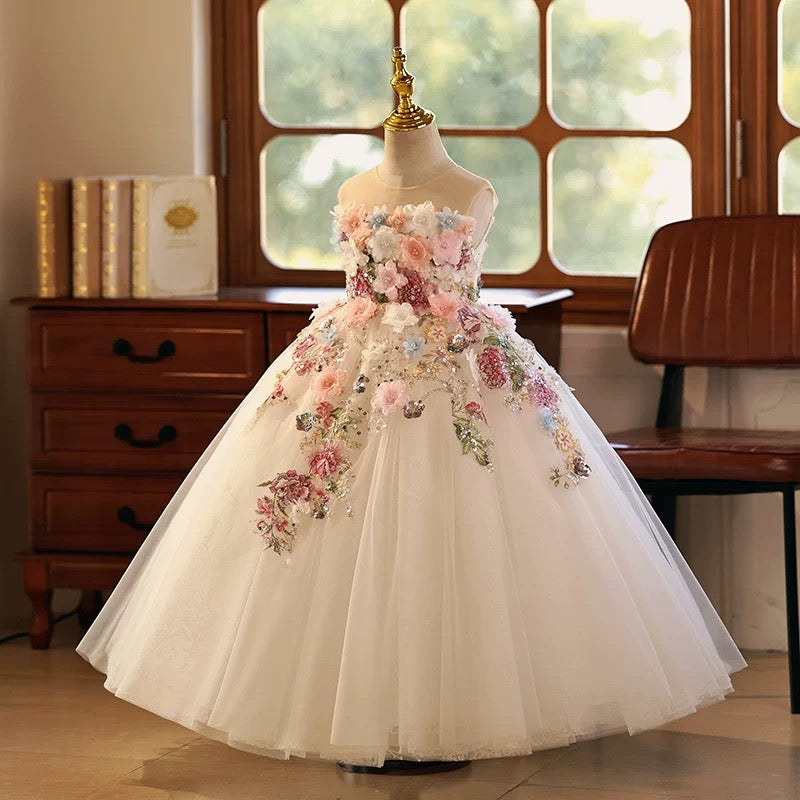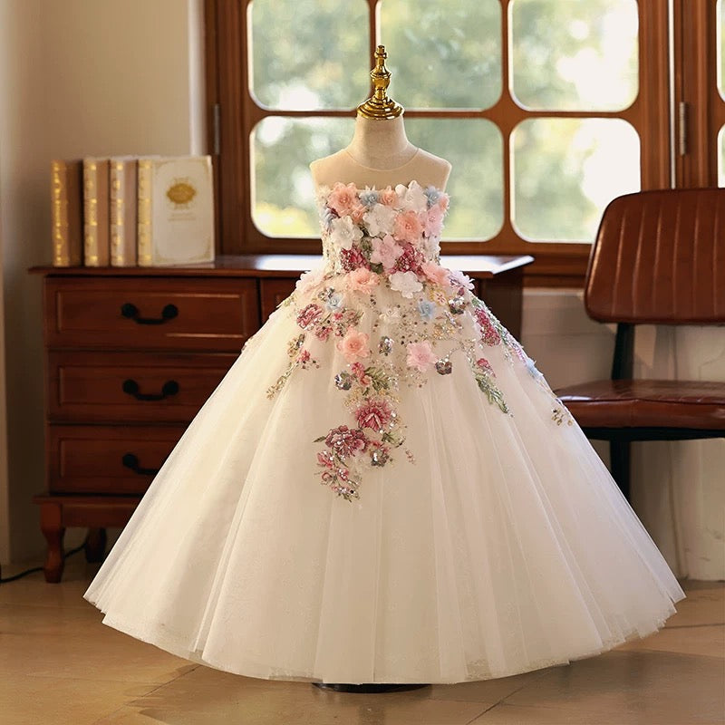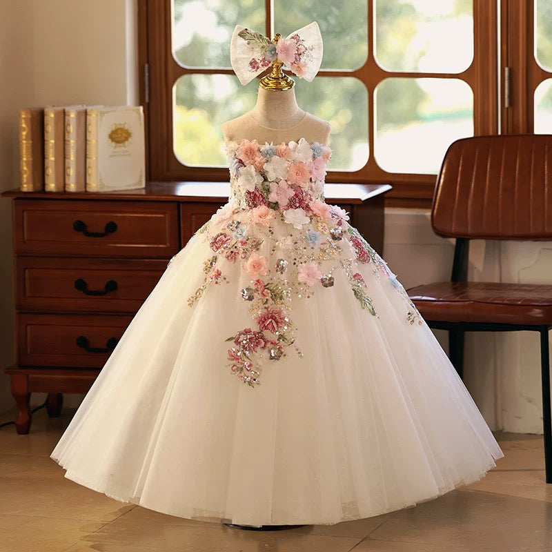 Floral Luxury Long Girl Dress for Princess Birthday Pageant J292B