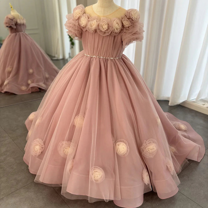 DreamyVow Luxury Arabic Pink Girl Dress Handmade Flowers Princess Gown Kids Wedding Birthday Communion Party Quinceañera J150-DreamyVow