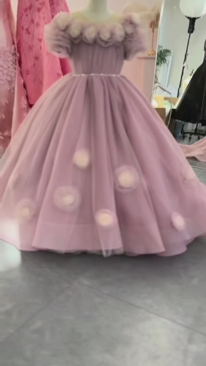 This dreamy pink princess gown is fit for any special occasion. Handmade flowers adorn the luxurious Arabic design, perfect for weddings, birthdays, communions, and quinceañeras. Make your little girl's day unforgettable with this elegant and unique dress. Available in a range of sizes to fit any princess-in-the-making.