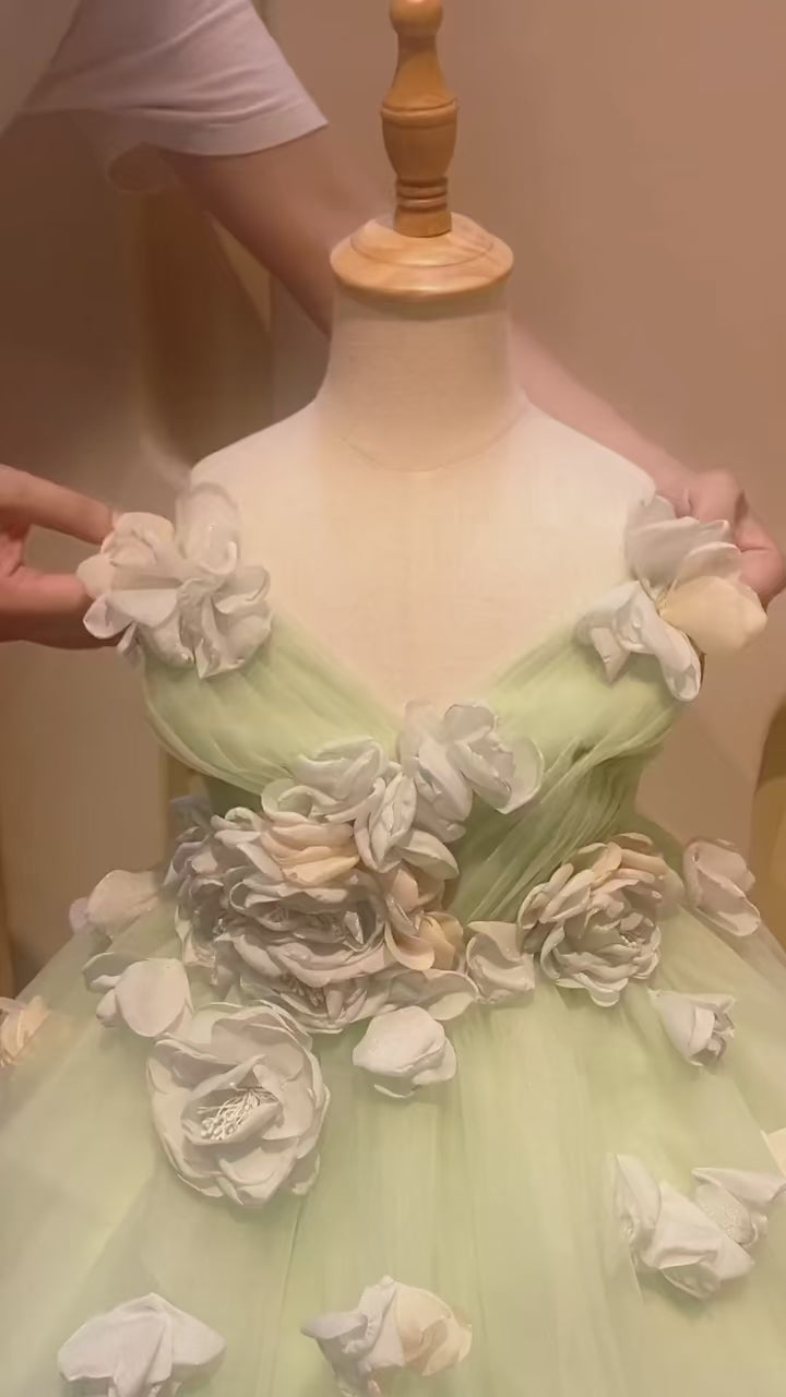 Indulge in luxury with our DreamyVow Girl Dress. Made with handmade flowers and a sage green color, it's perfect for birthday parties, weddings, or pageants. Get the royal treatment with this princess gown for an elegant and stylish look..