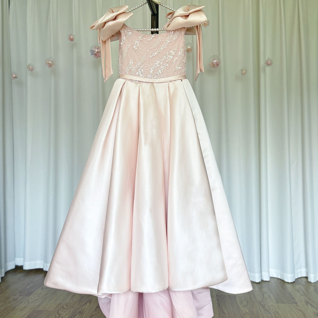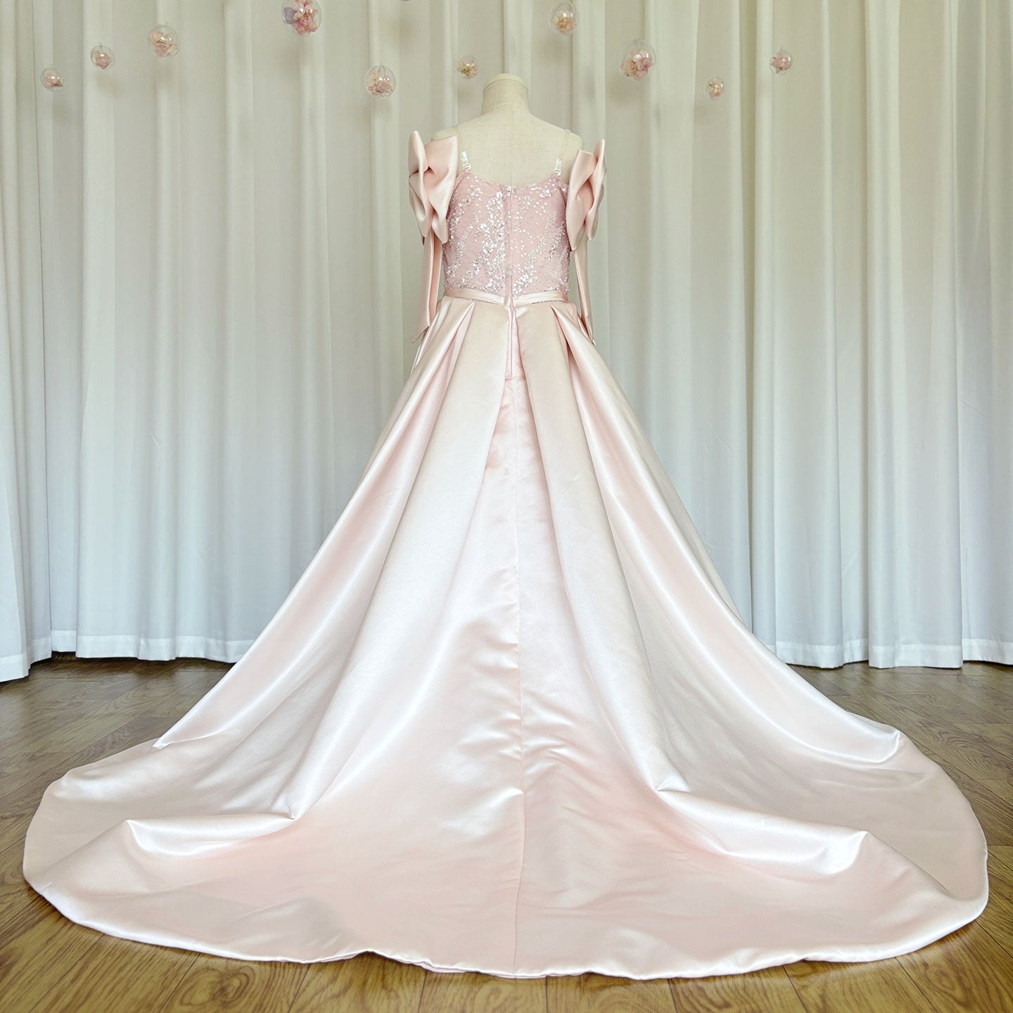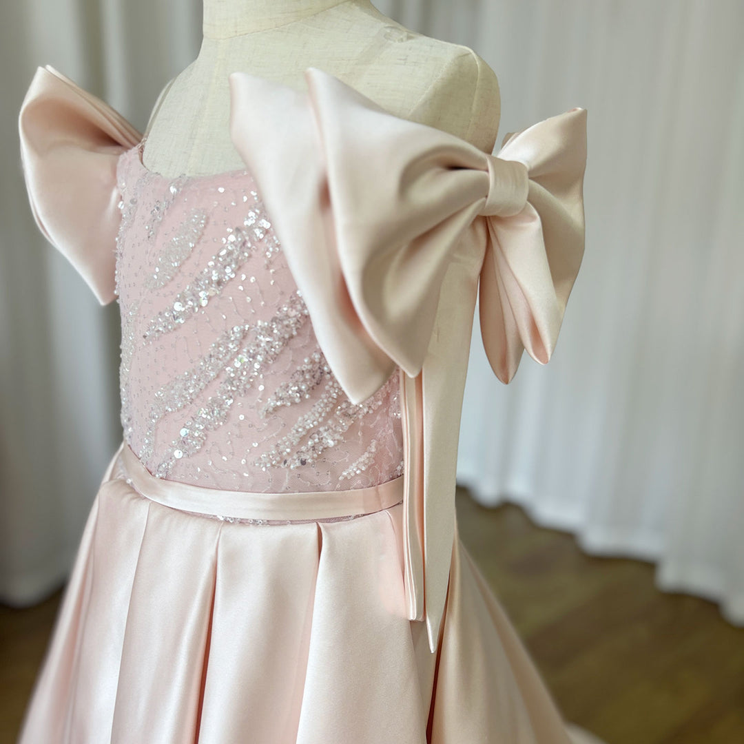 Luxury Elegant Pink Flower Girl Dress with Bow J113