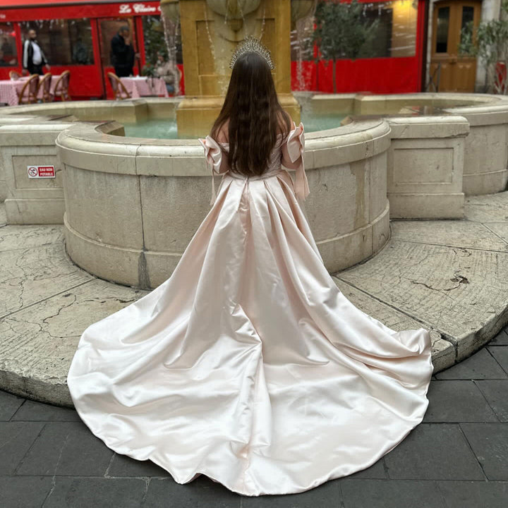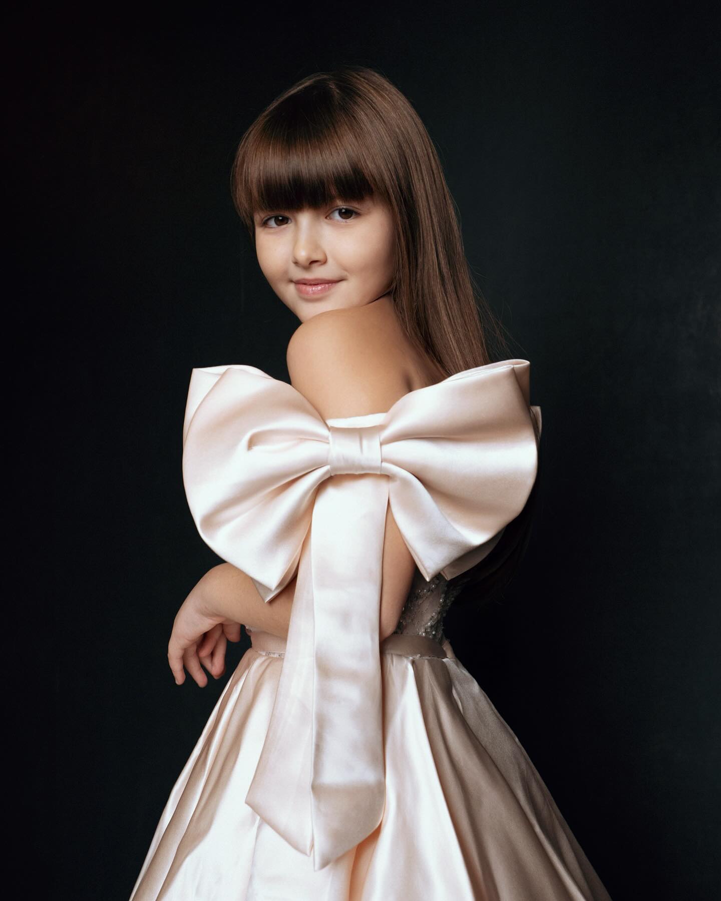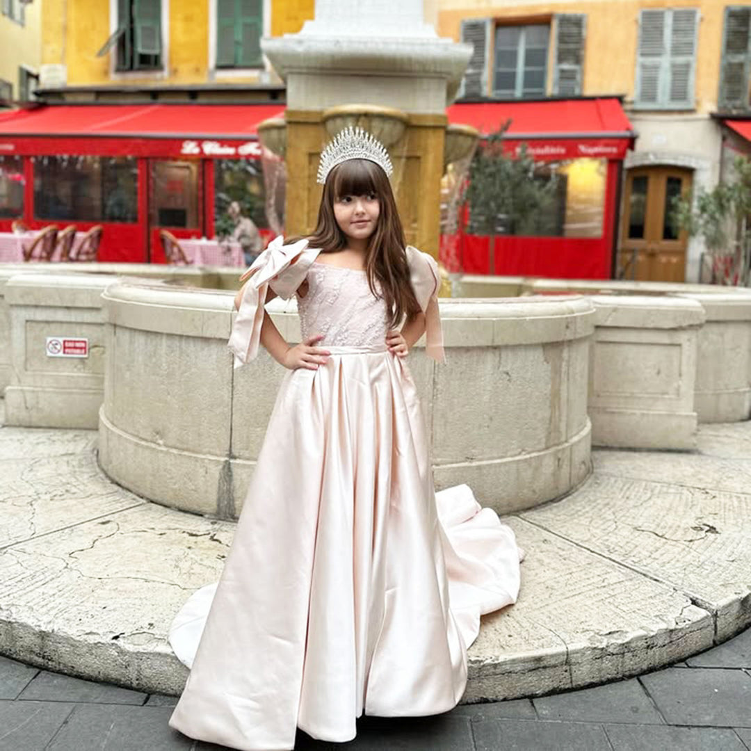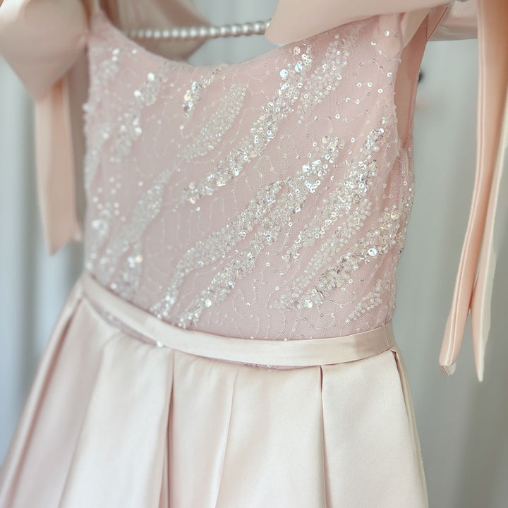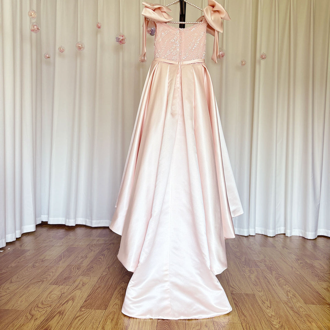Luxury Elegant Pink Flower Girl Dress with Bow J113