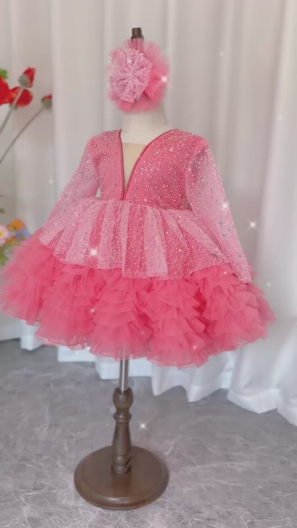 Luxury Girl Dress Sequined for Baby Kids Birthday Wedding Party J152