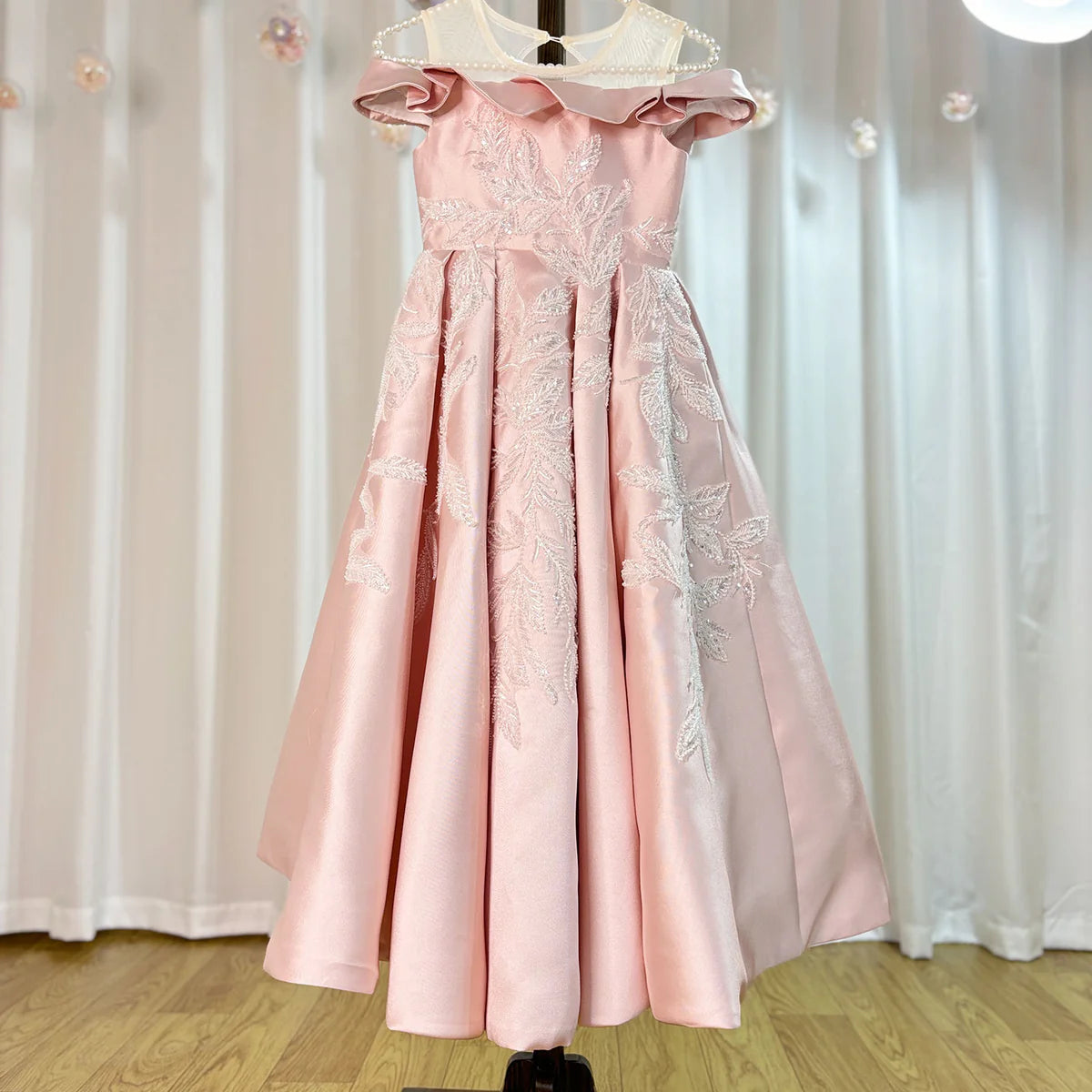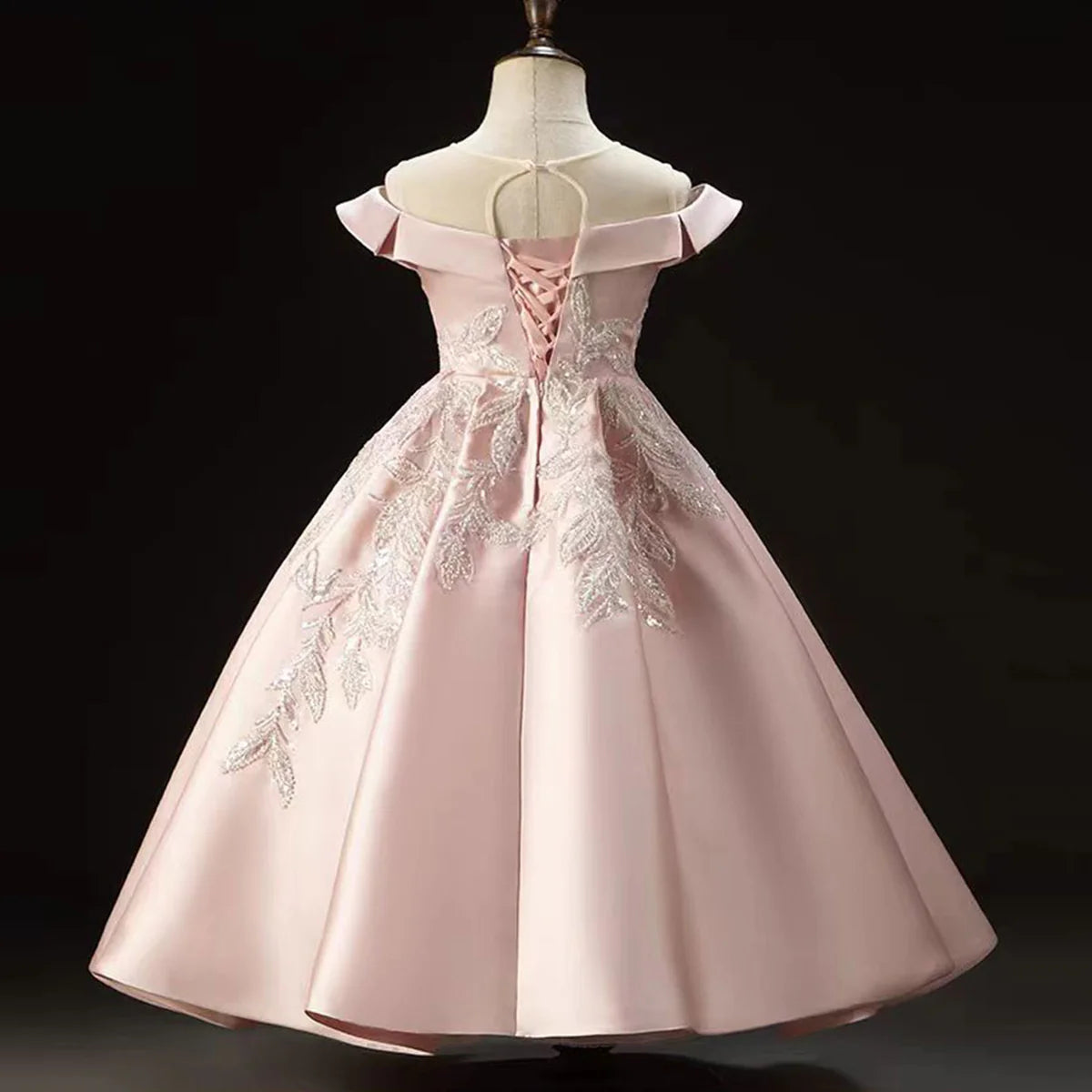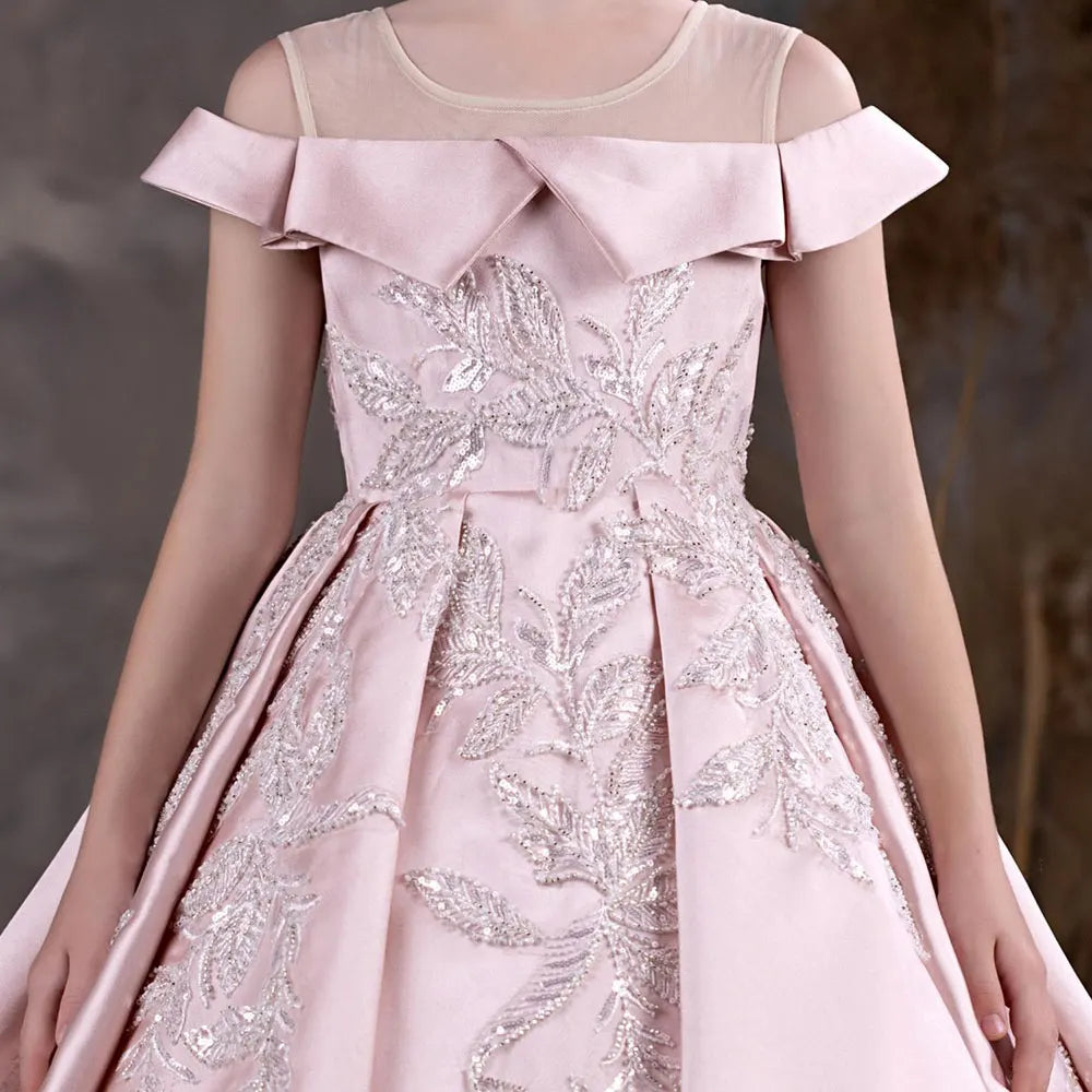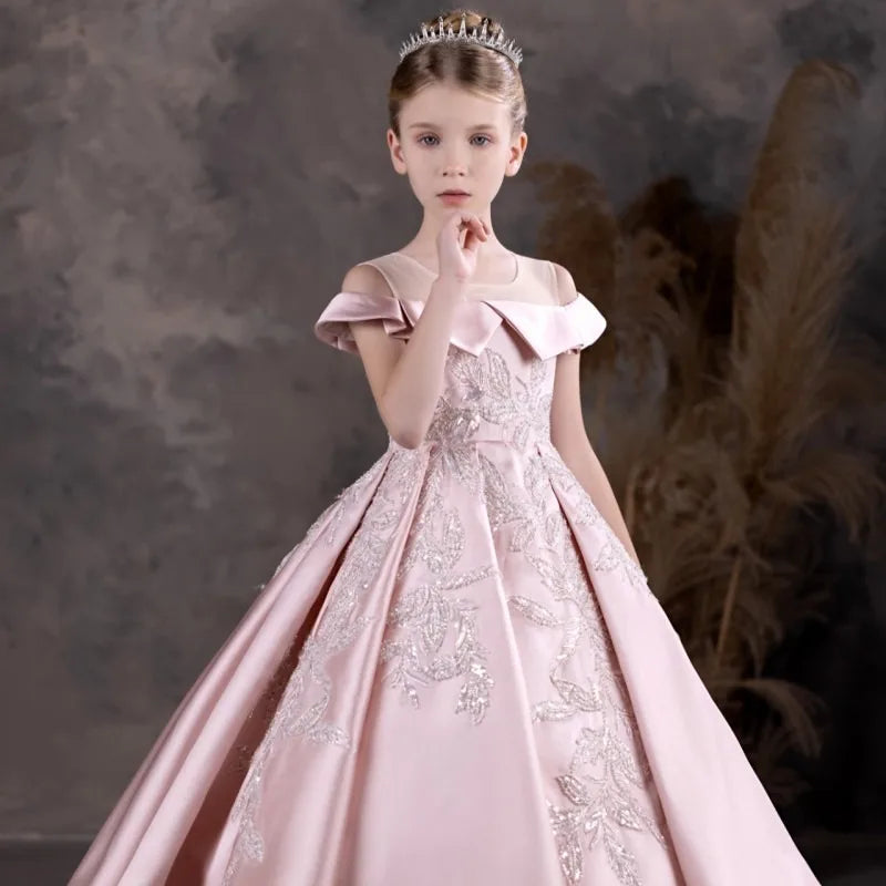 Luxury Pink Flower Girl Dress Appliques Sequined Princess J129