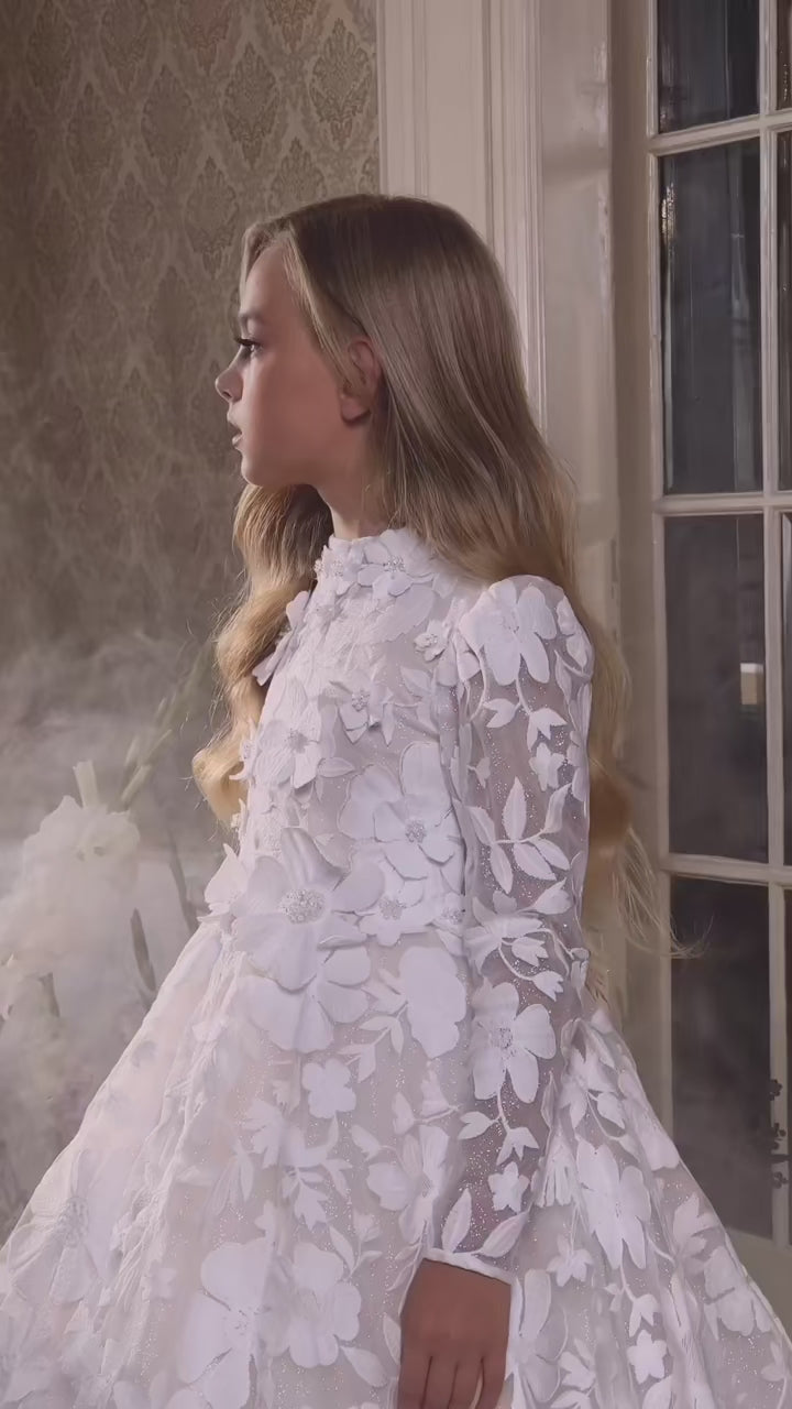 DreamyVow Luxury White Girl Dress 3D Flowers Princess Dubai Kids Wedding Birthday Communion Party Elegant Evening Gown 2024 J293-DreamyVow